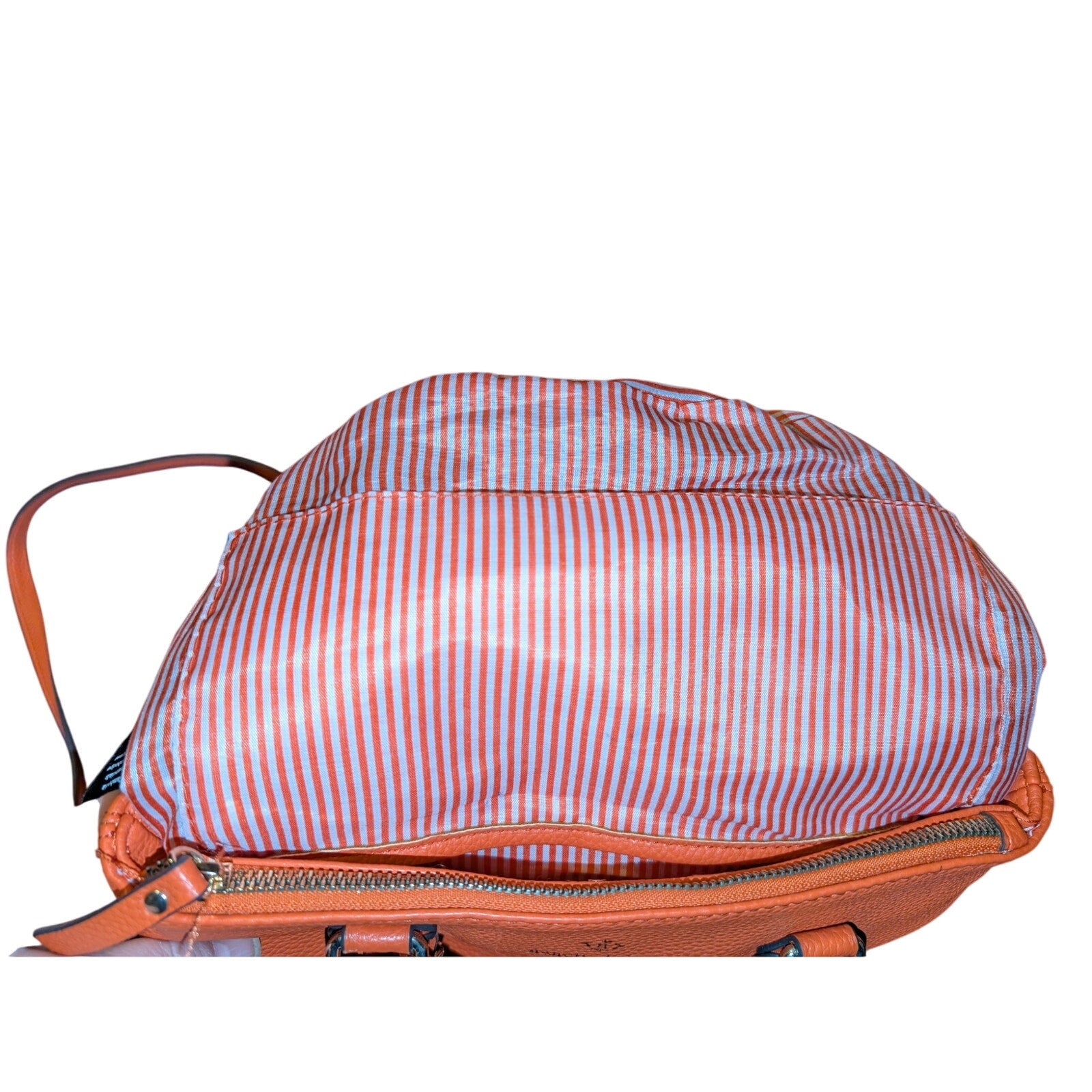 Nanette Lepore Orange Leather Satchel W/ Orange Flower Charm
