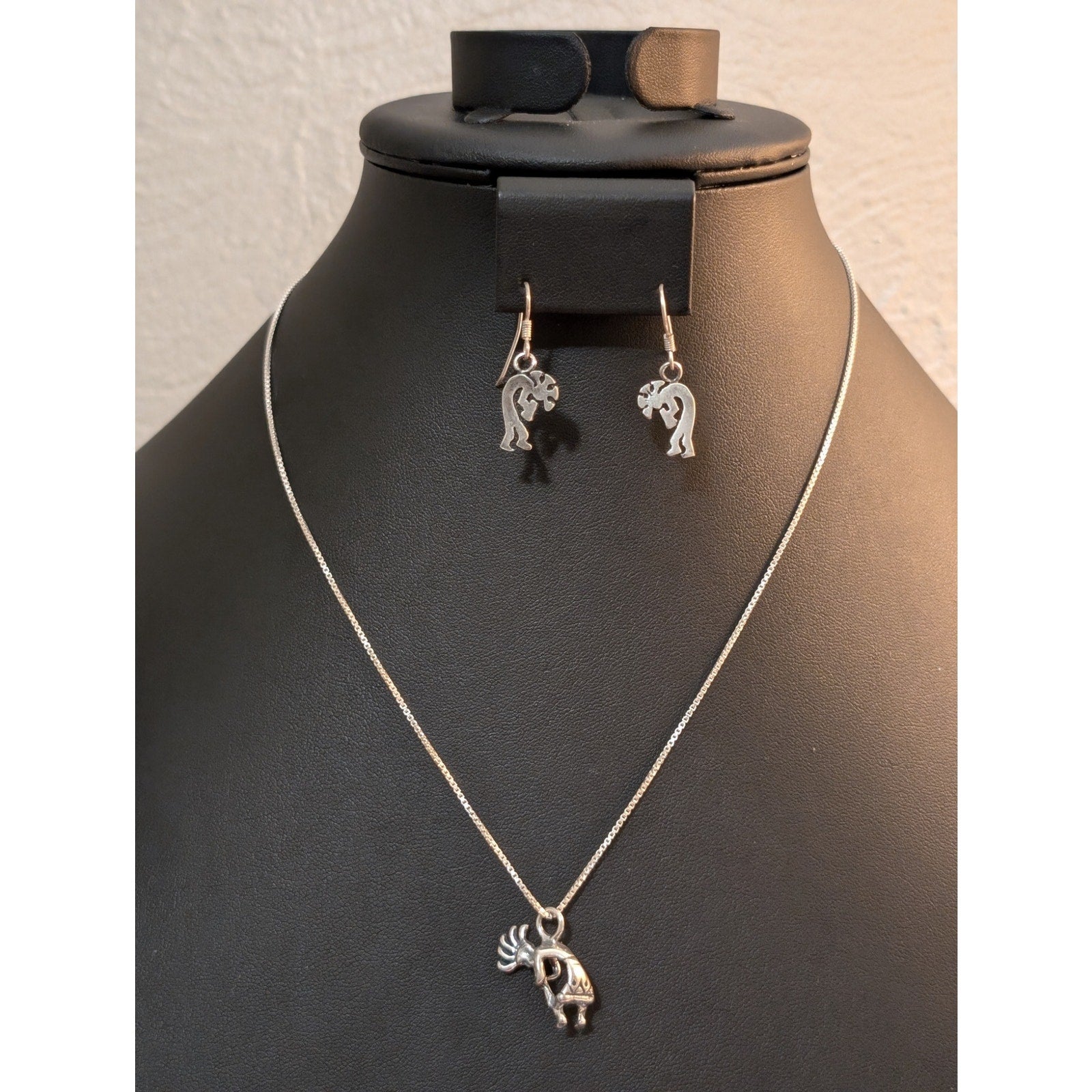 Navajo Kokopelli Sterling 18" Necklace & Earring Set