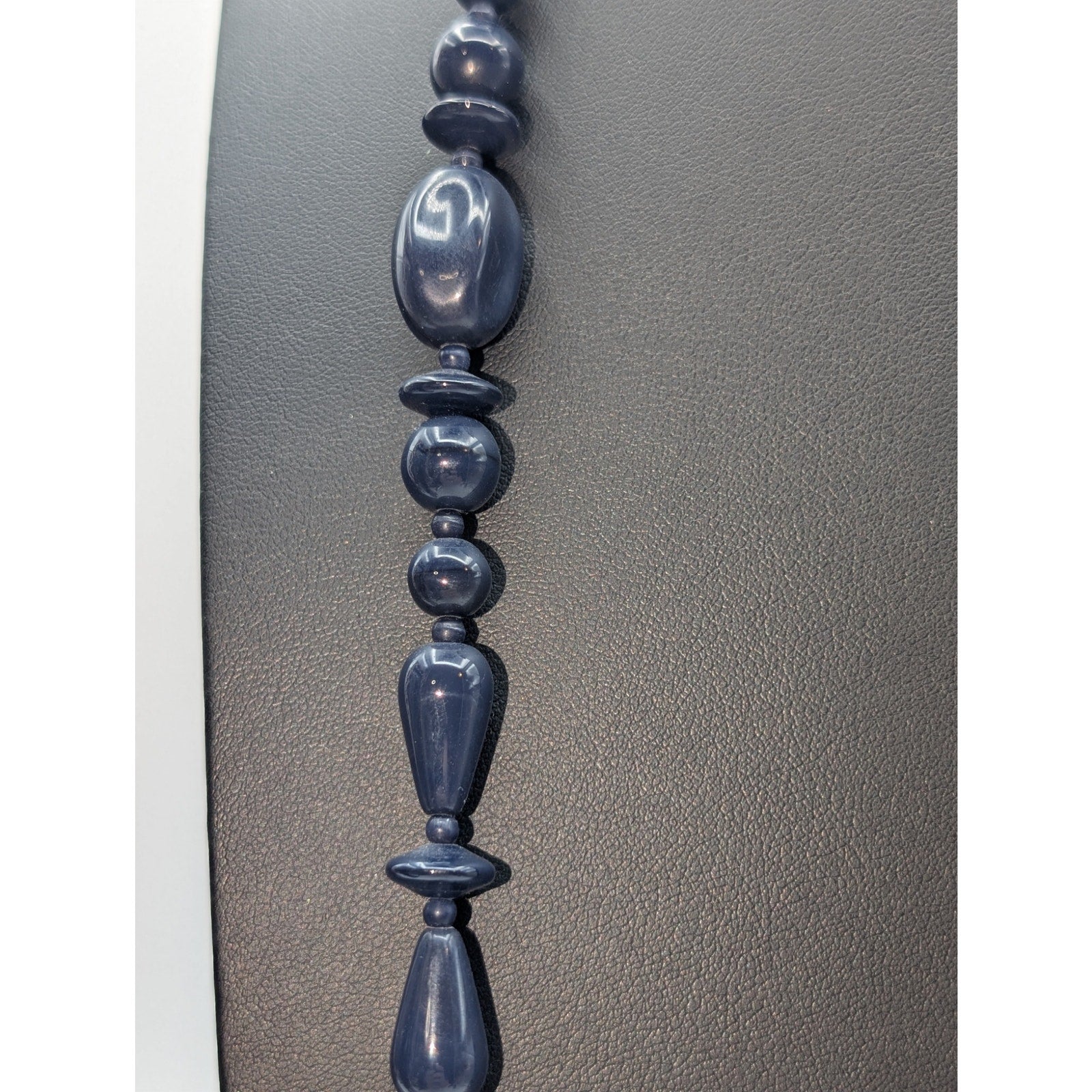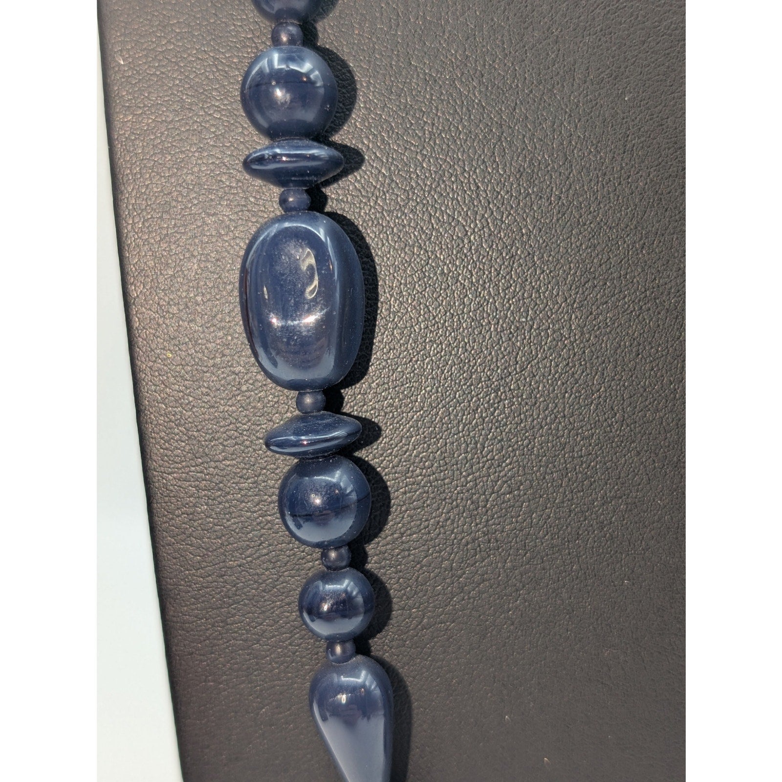 Navy Glass Multi-Shape Bead 36" Single Strand Necklace W/ Lobster Clasp. Pre-owned, this necklace is in excellent condition.