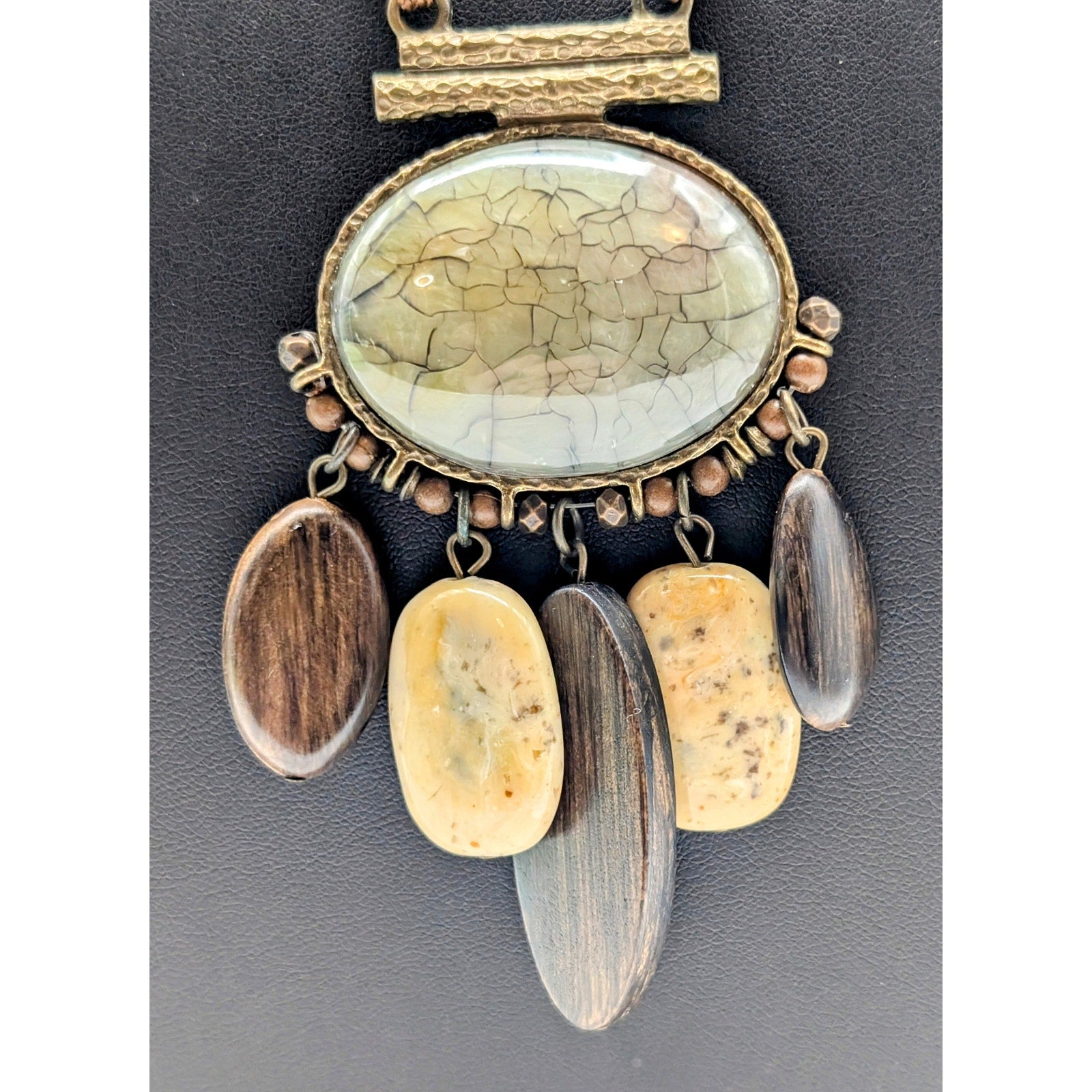 NWT Premier Designs Rockport Natural Earthy Boho Stone Adjustable Cord Necklace