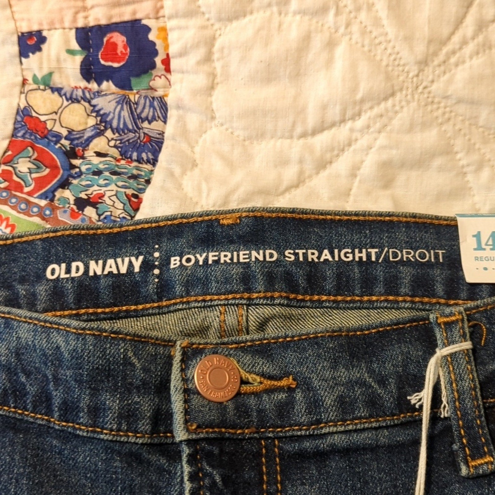 Old Navy NWT Distressed Cuffed Boyfriend Straight Jean Women's Size 14. Cotton with some stretch. Inseam measures 26". NWT. Classic, modern, wardrobe staple. Boyfriend jean.