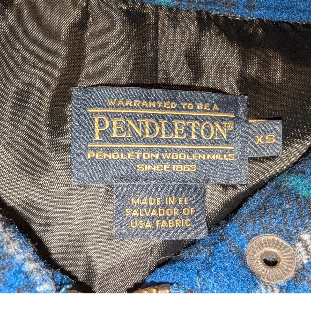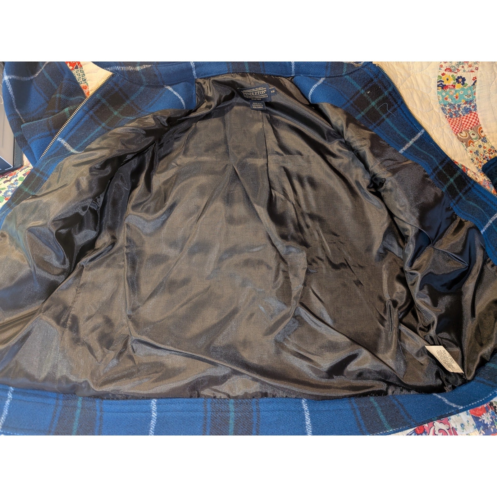 Pendleton Blue Black Green White Plaid Classic Timeless Bomber Jacket Women's Size XS. Pre-owned, this lined, front zip front pocket bomber jacket is in excellent condition. Sleeves measure 23" from shoulder seam. Length is 22" from back neck.