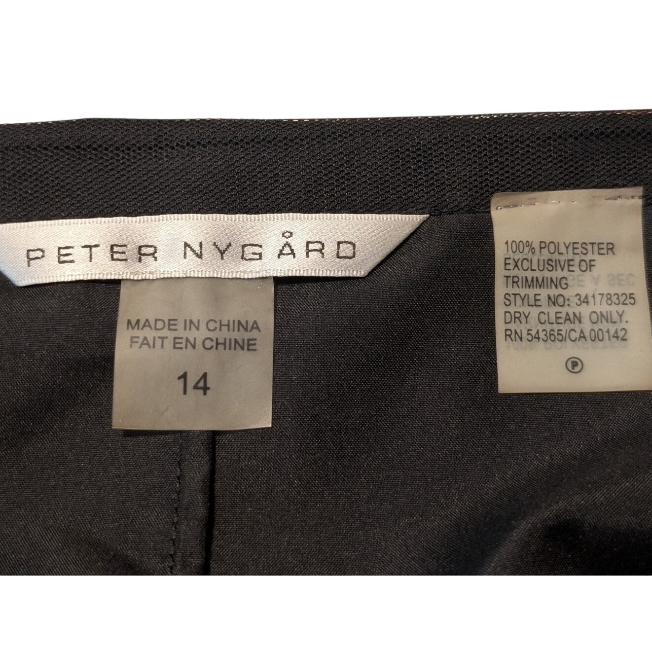 Peter Nygard Black Mesh Netting Overlay With White Soutache Trim 36" Long Maxi Skirt Women's Sz 14. Pre-owned, this skirt is in excellent condition. Side zip.
