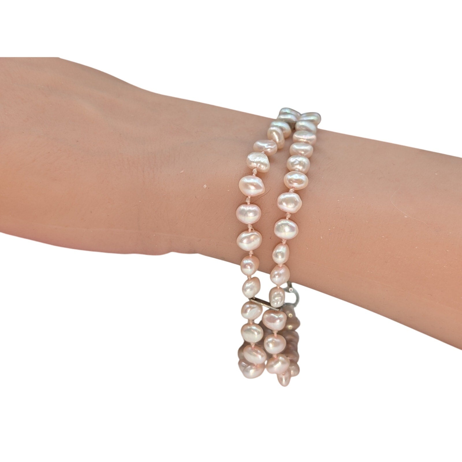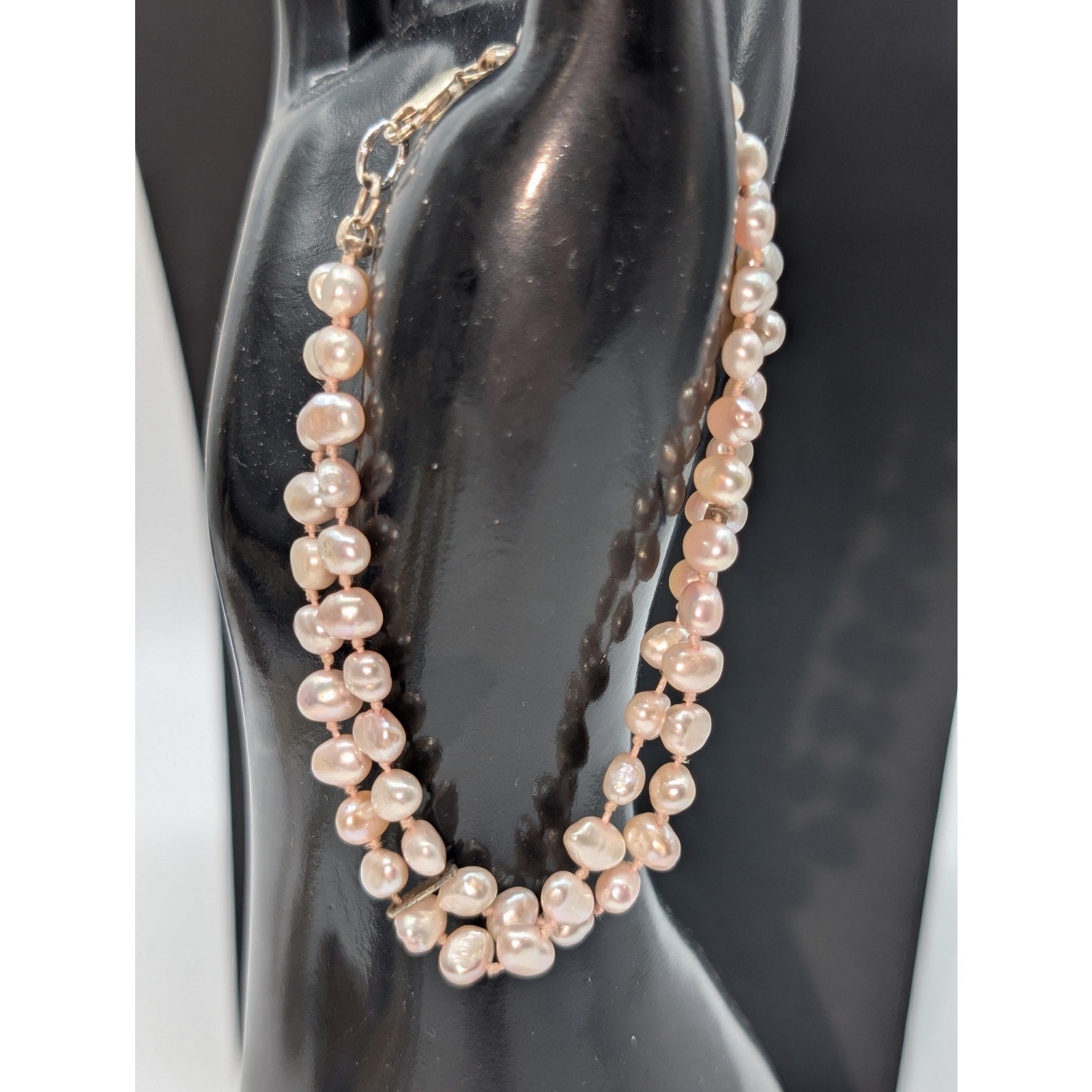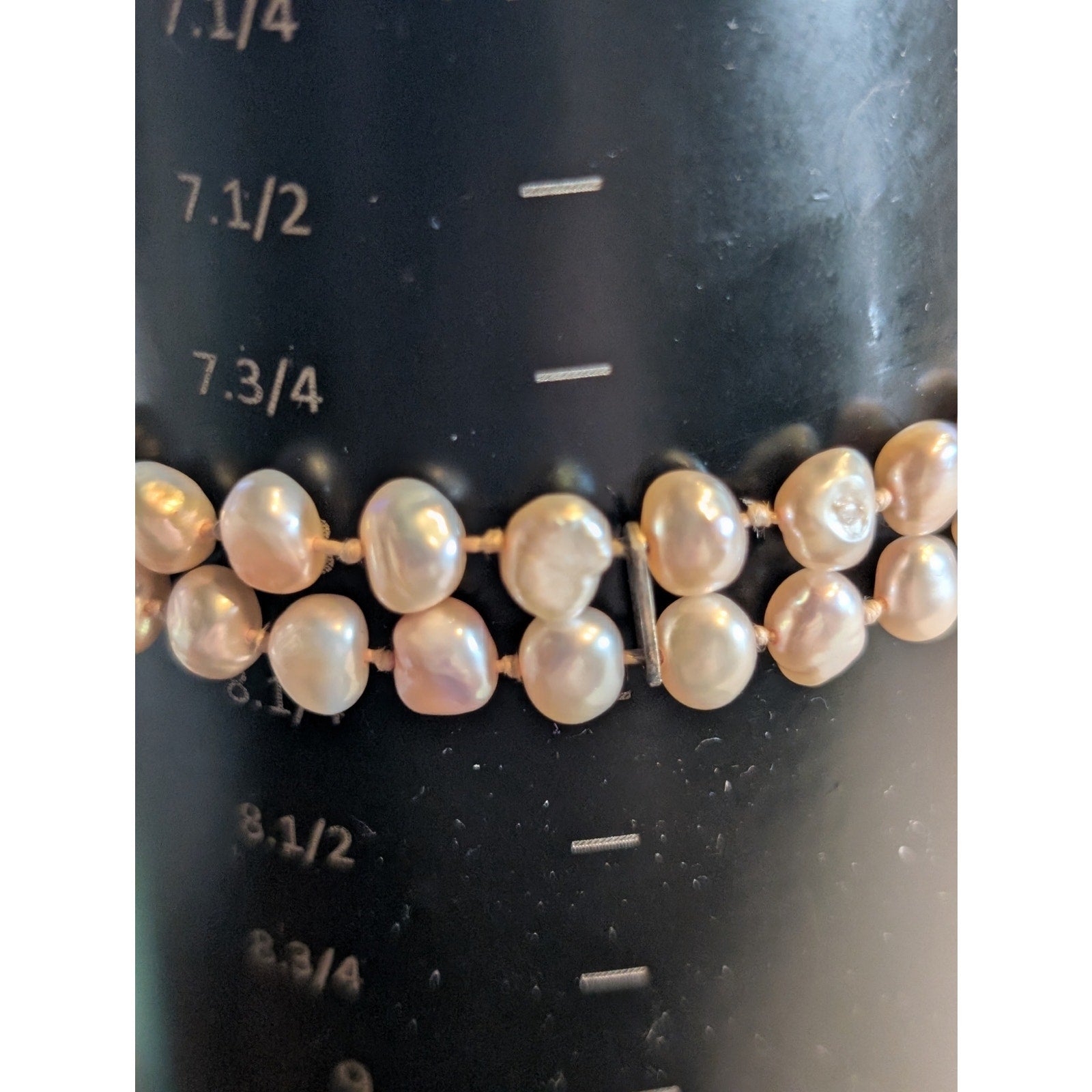 Pink Freshwater Pearl Double Strand Knotted Sterling Silver Clasp 8.25" Bracelet