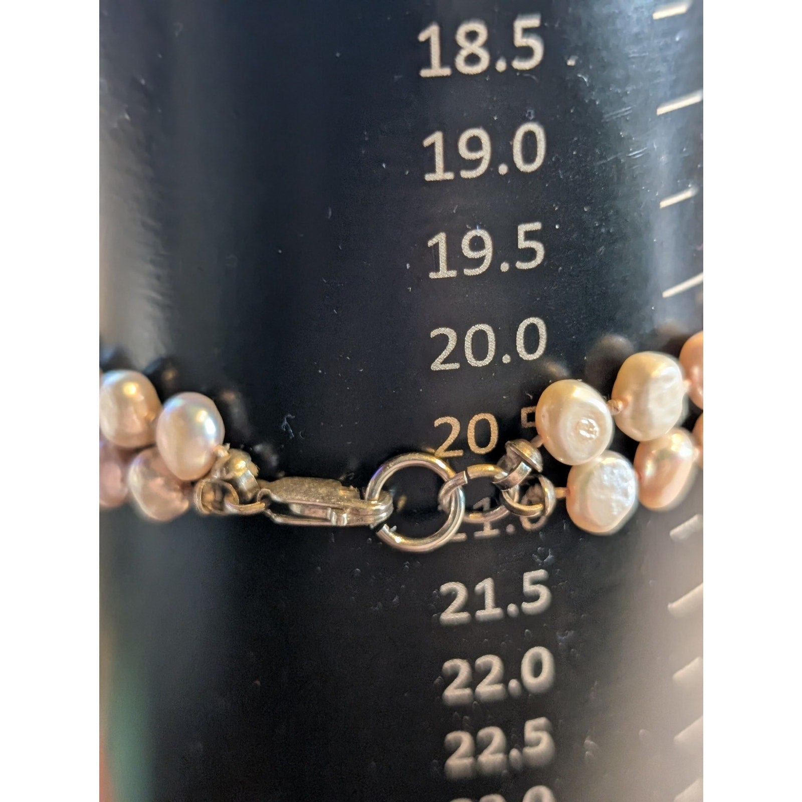 Petal Pink Freshwater Pearl Double Strand Knotted Sterling Silver Clasp 8.25" Bracelet. Dainty and feminine is this palest pink pearl bracelet in an 8.25" length. Pre-owned, it is in excellent condition.