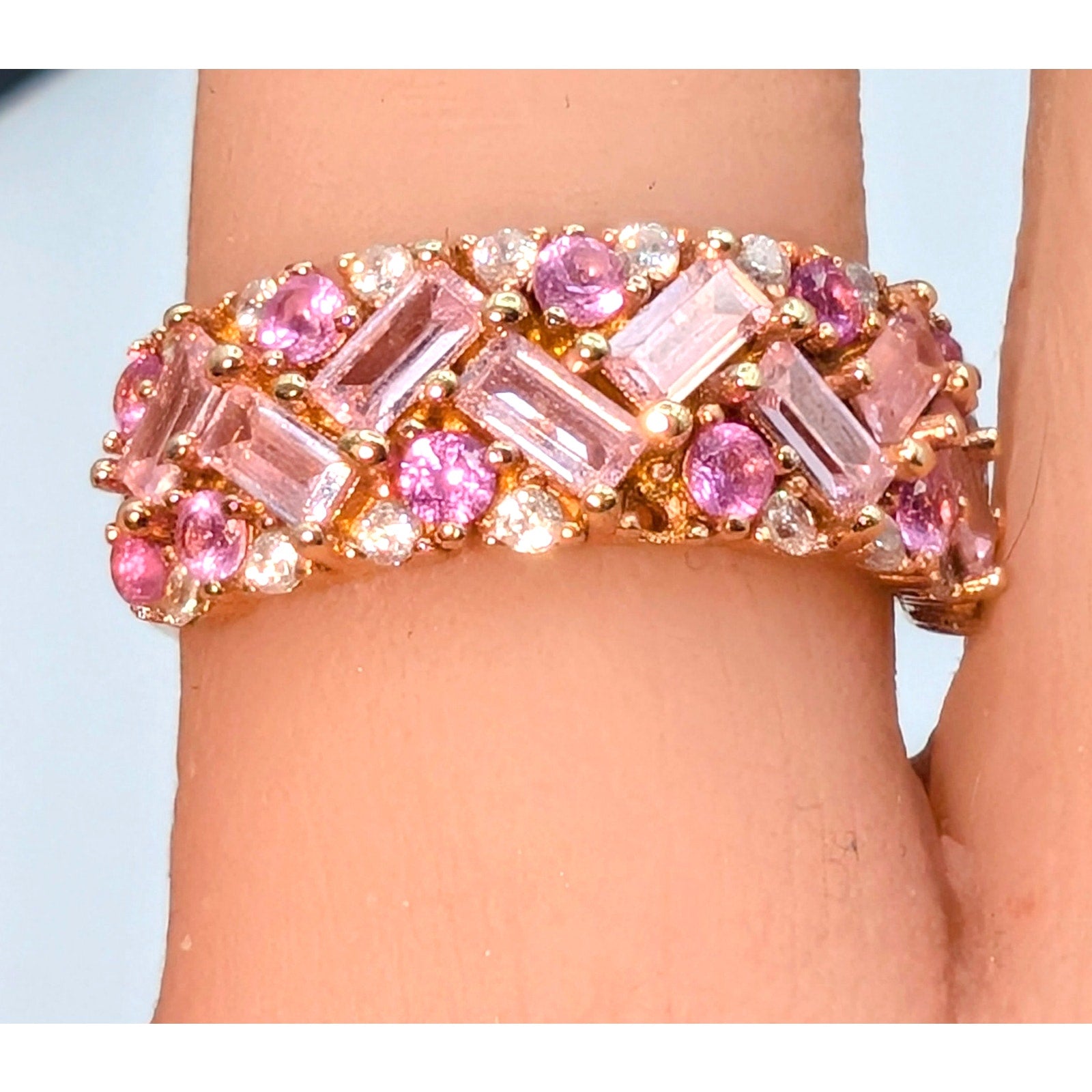 Pink Sapphire Pink & White CZ 18K Rose Gold Over 925 Sterling Silver Ring Size 6.75-7. Pre-owned, this ring is in excellent condition.
