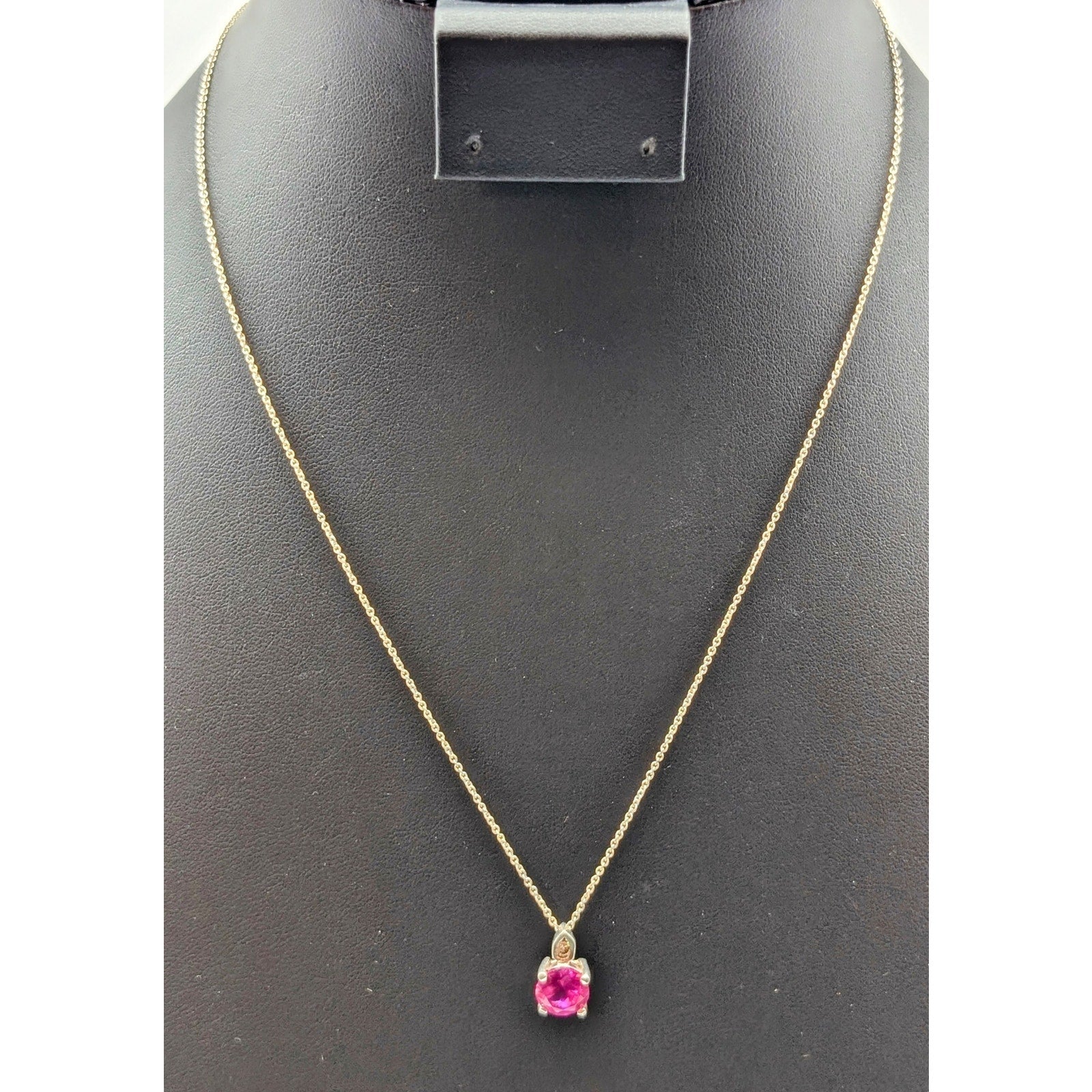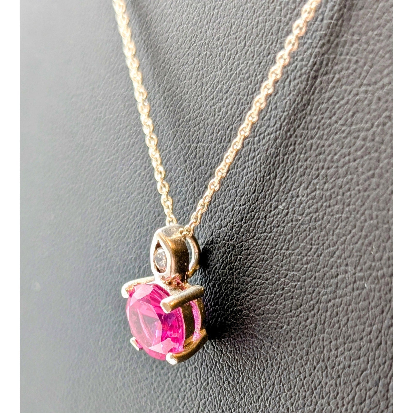 Pink Sapphire Solitaire & CZ Pendant 925 Sterling Silver 18.5" Necklace - 2 Ct Lab Created Gemstone, September Birthstone Jewelry, 5th / 45th Anniversary Gift. Pre-owned, this gorgeous hot pink lab created sapphire pendant is in excellent condition.