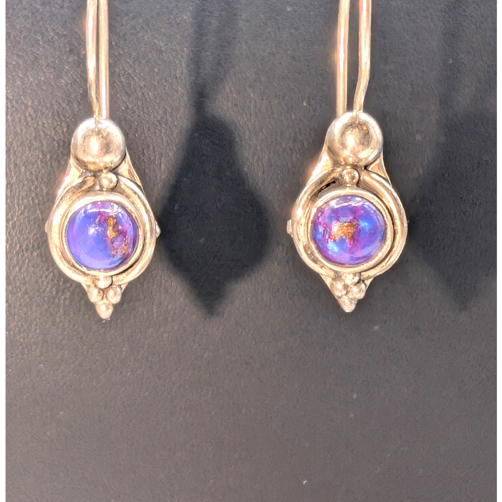 Purple Copper Turquoise 925 Sterling Silver Dangle Earrings. Pre-owned, these earrings are in excellent condition.