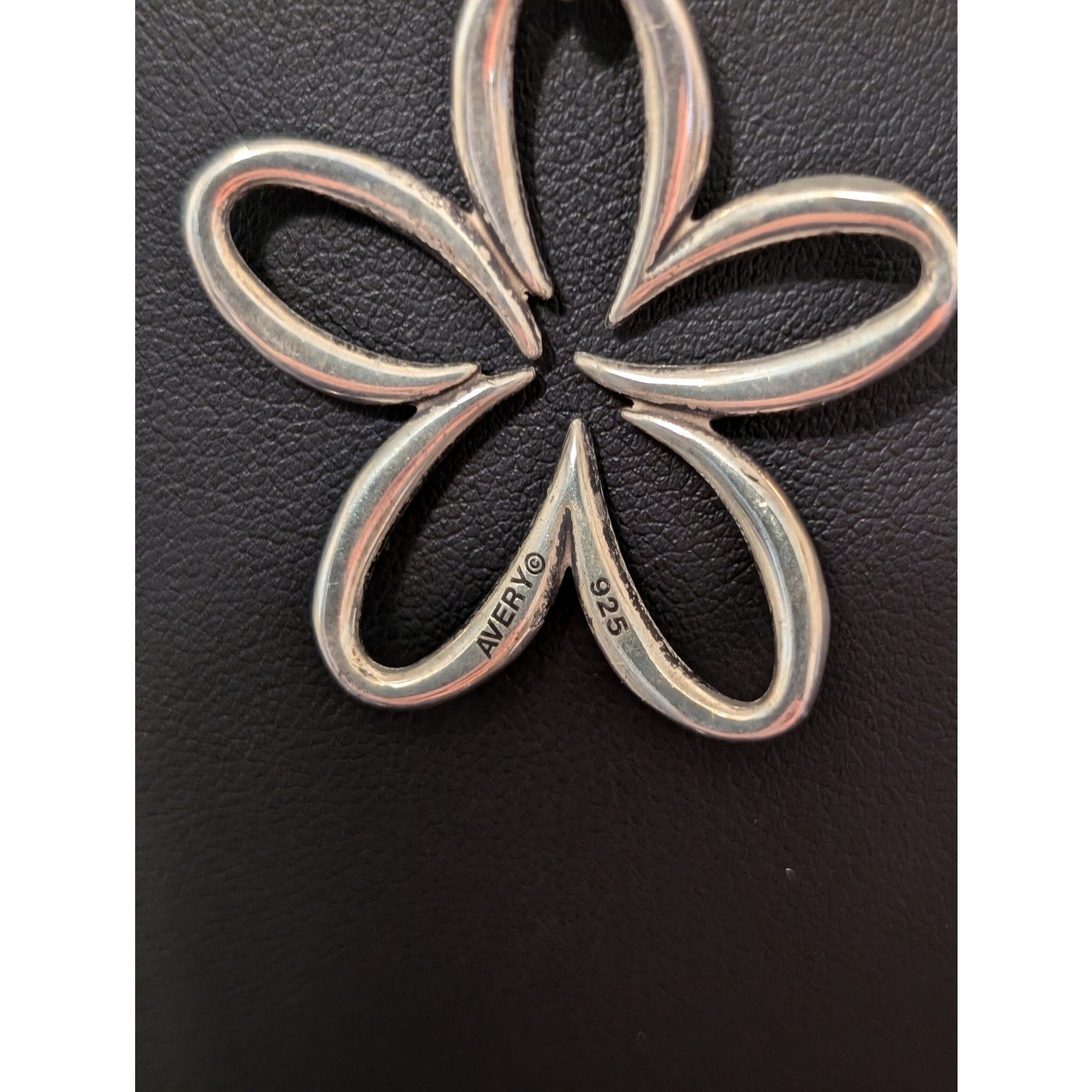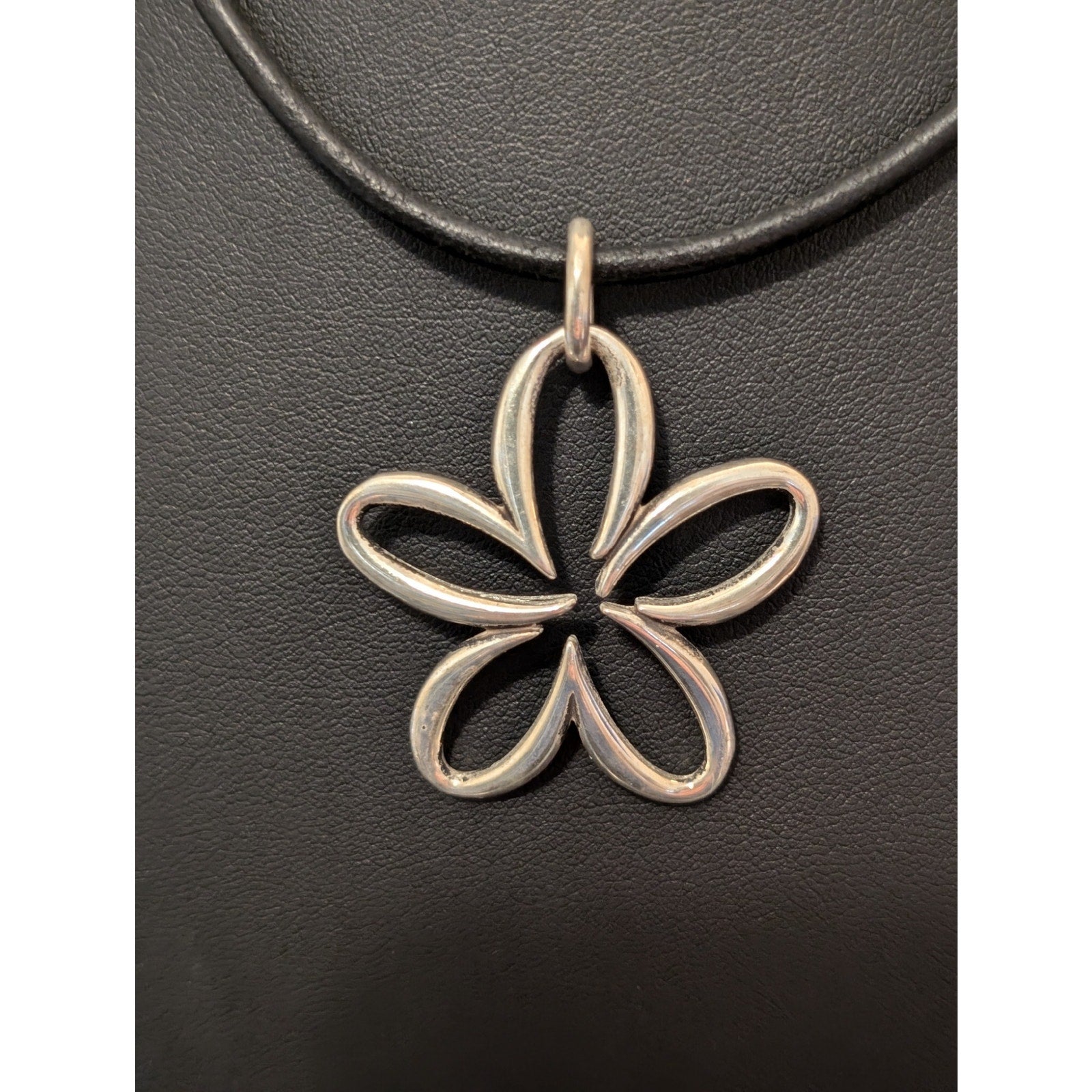 Rare Retired James Avery Sterling Silver Open Daisy Flower Pendant Cord Necklace. Both 18" cord and pendant are signed. Pre-owned, this necklace is in excellent condition.