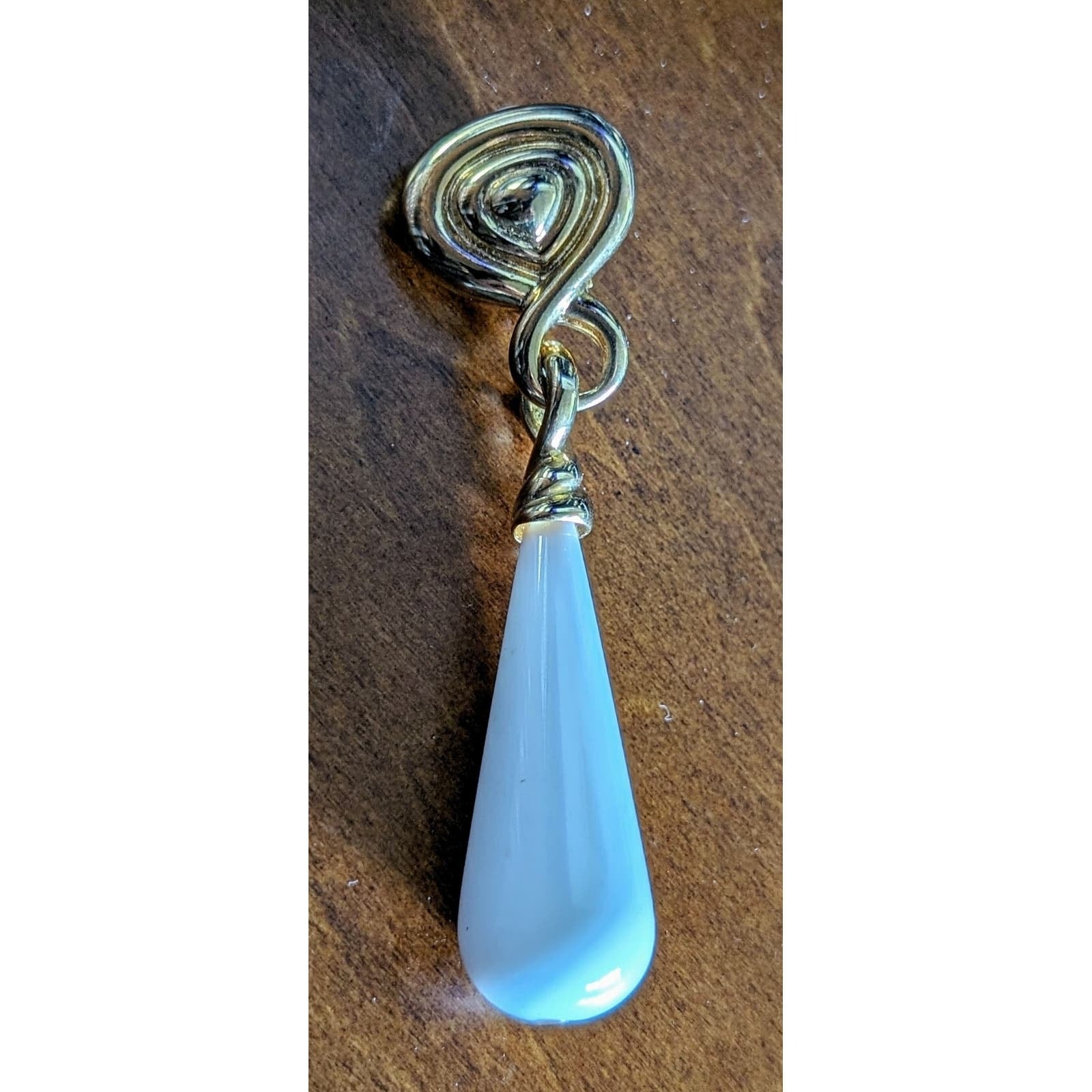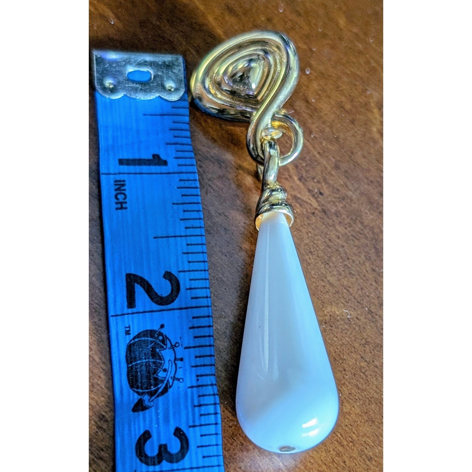 Rare! Vintage Signed FO Inc. Large Milk Glass Teardrop Swirl Clip On Earrings