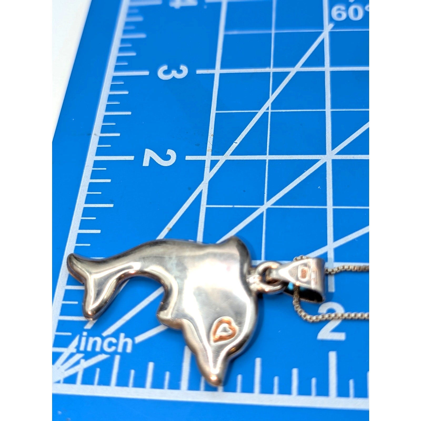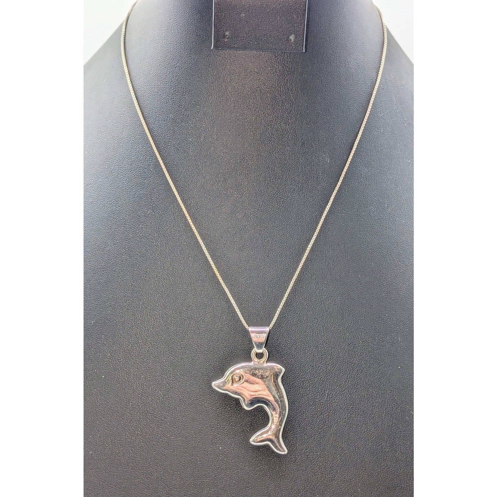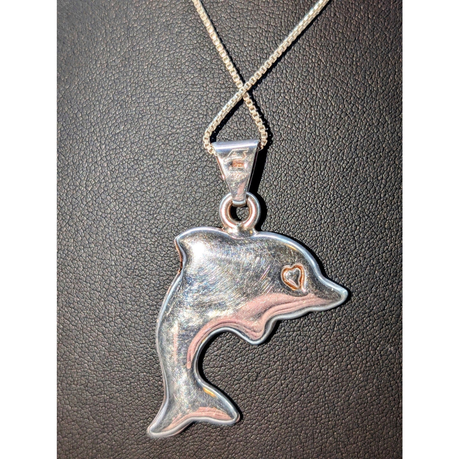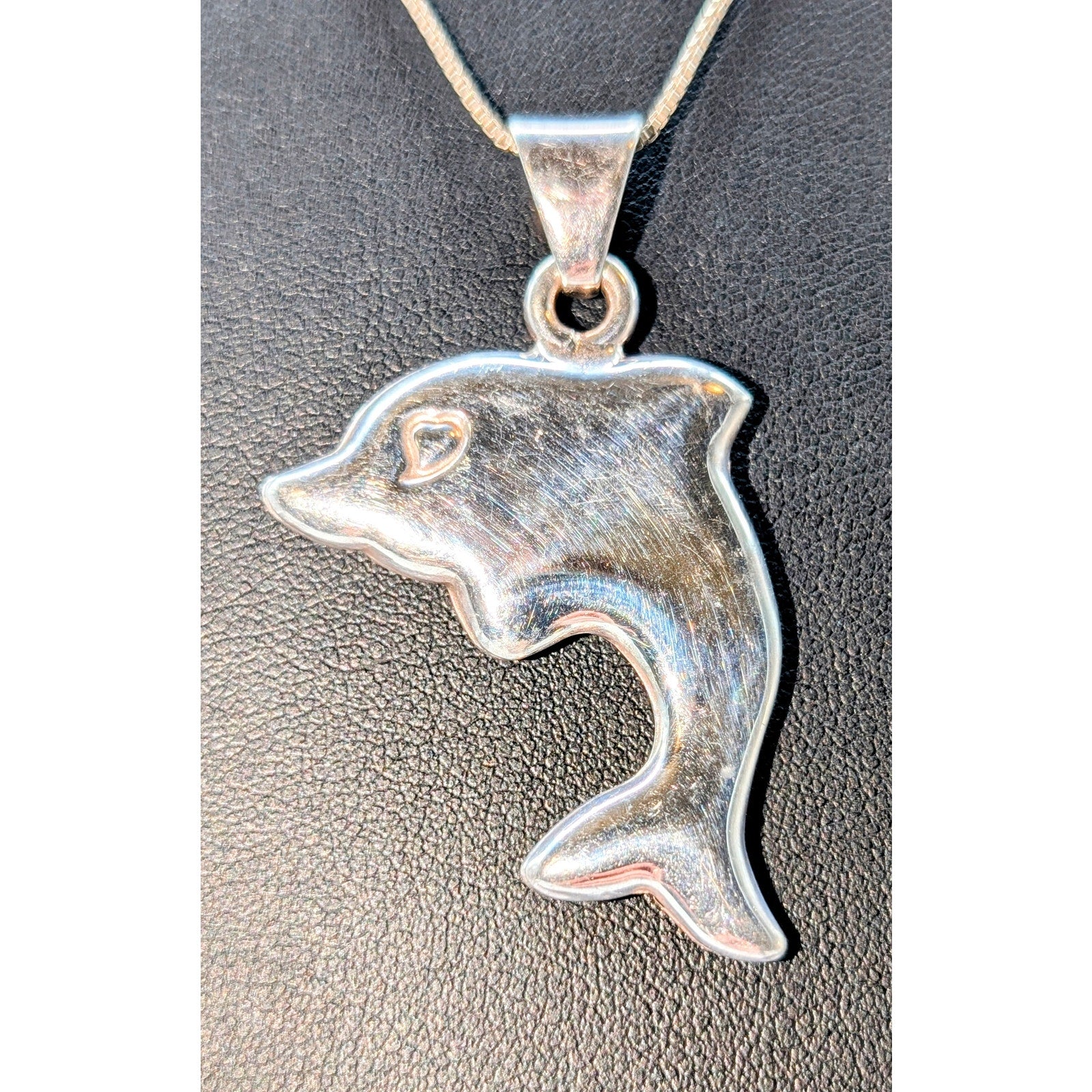 Rare VTG Signed Alunno and Stendardi 925 Sterling Large Dolphin Pendant 18.5" Necklace. Good vintage condition. Lightweight.