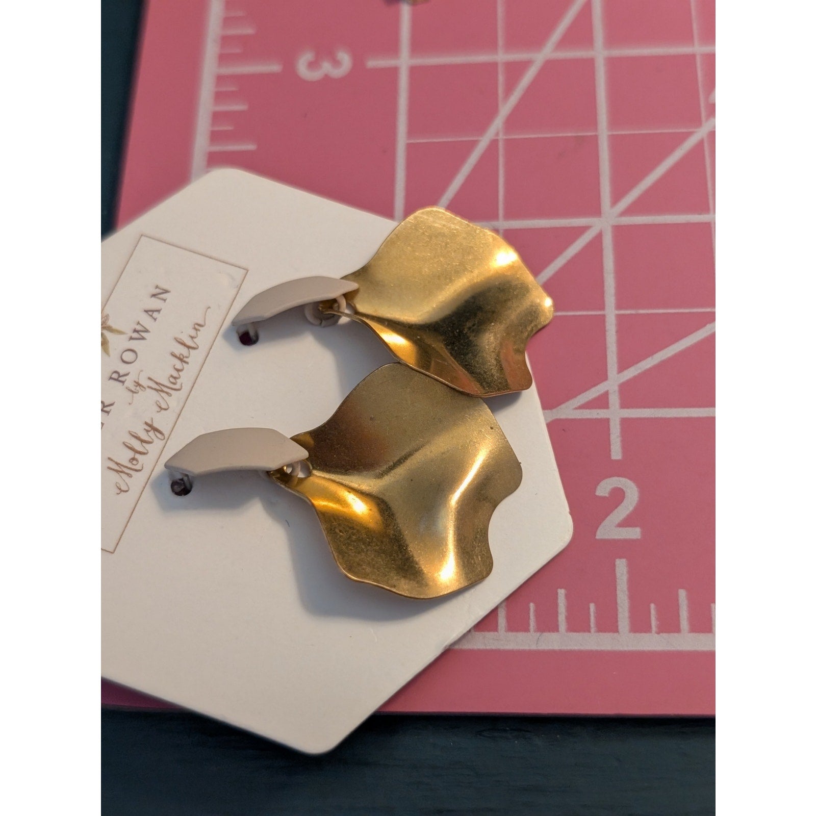 River Rowan Molly Macklin Artisan Designed Pierced Cream Enamel Gold Tone Dangle Earrings. Pre-owned, these earrings are NWT.