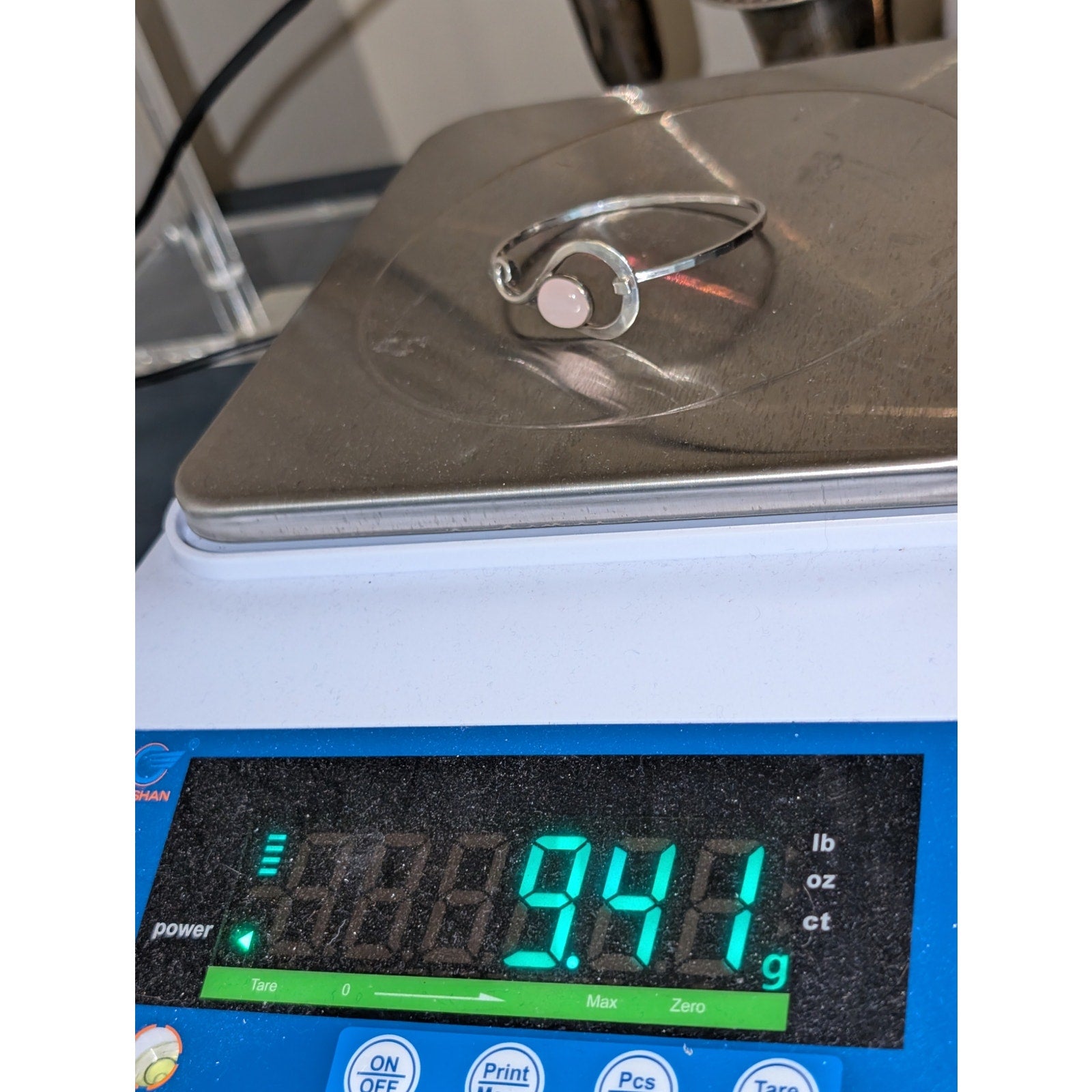 RLC Sterling Silver Rose Quartz Hook Clasp Bangle Bracelet . Pre-owned, this bracelet is in excellent condition.