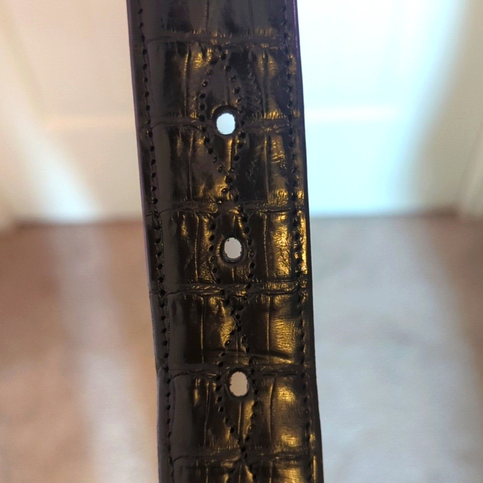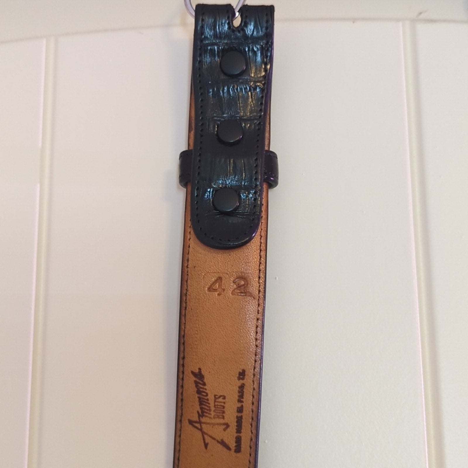 Rodney Ammons One of a Kind Custom Hand Made Black Alligator Belt Men's Size 42. 1.25" W. Made for your own custom buckle to be snapped in place. Pre-owned, this belt is in excellent condition. Worn a few times at most.