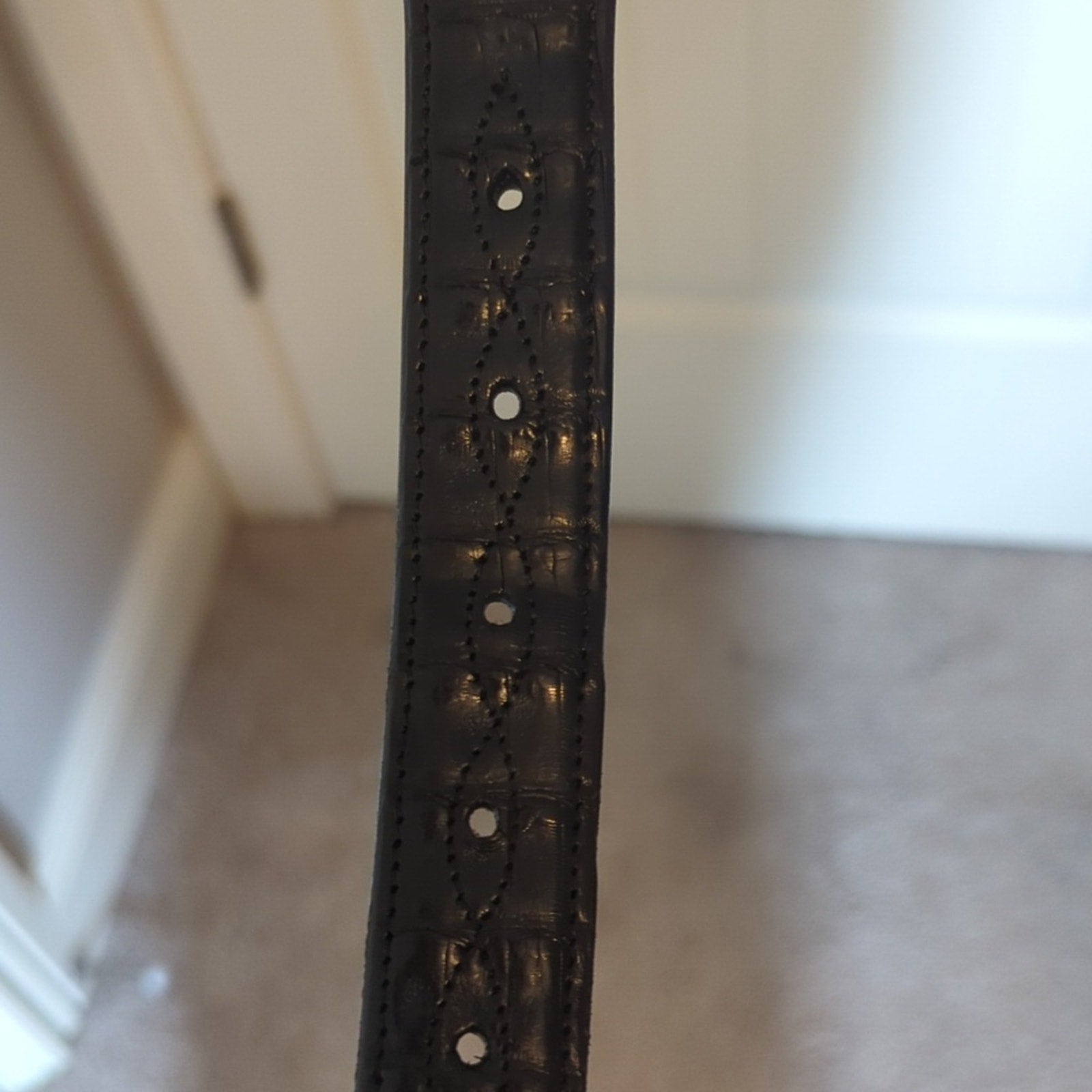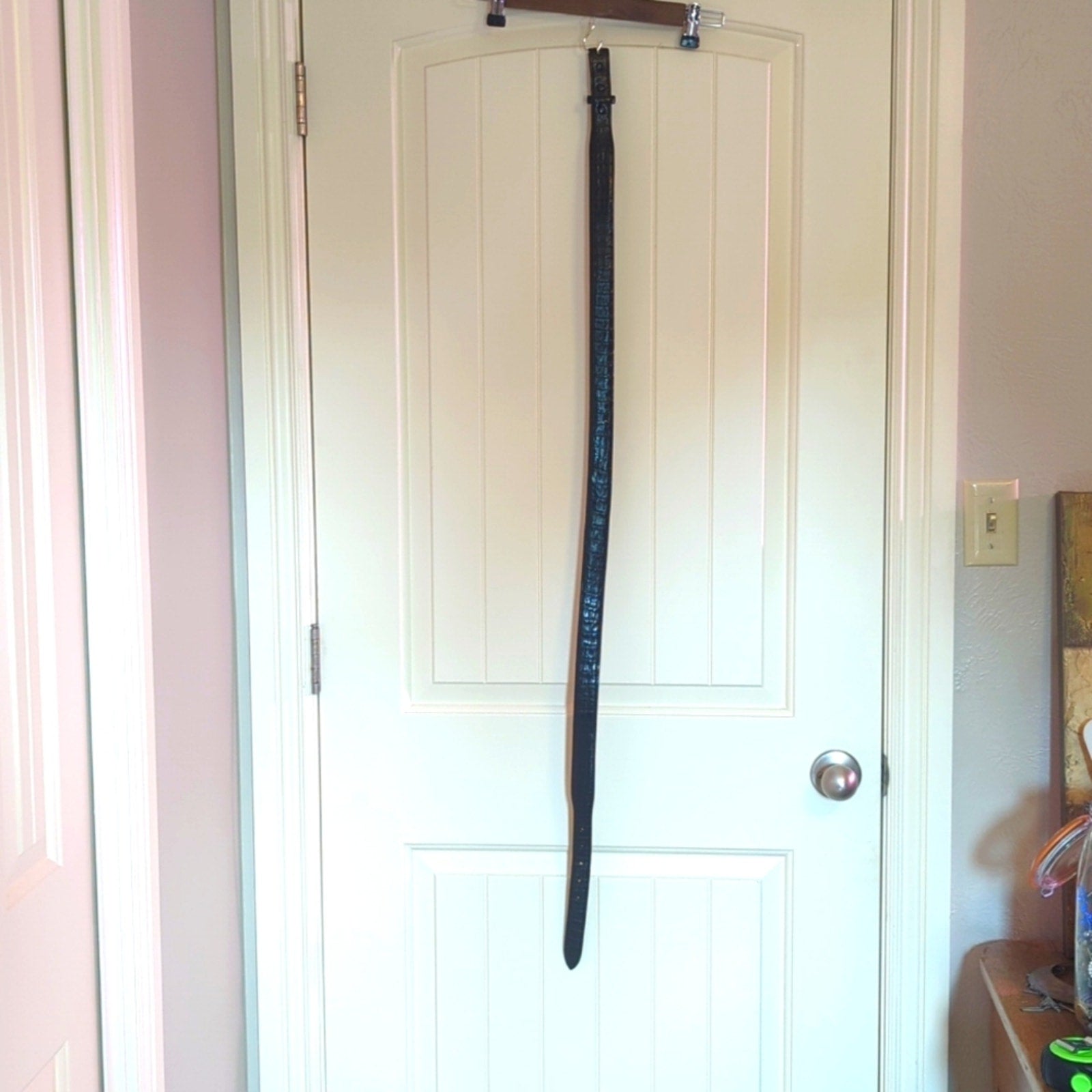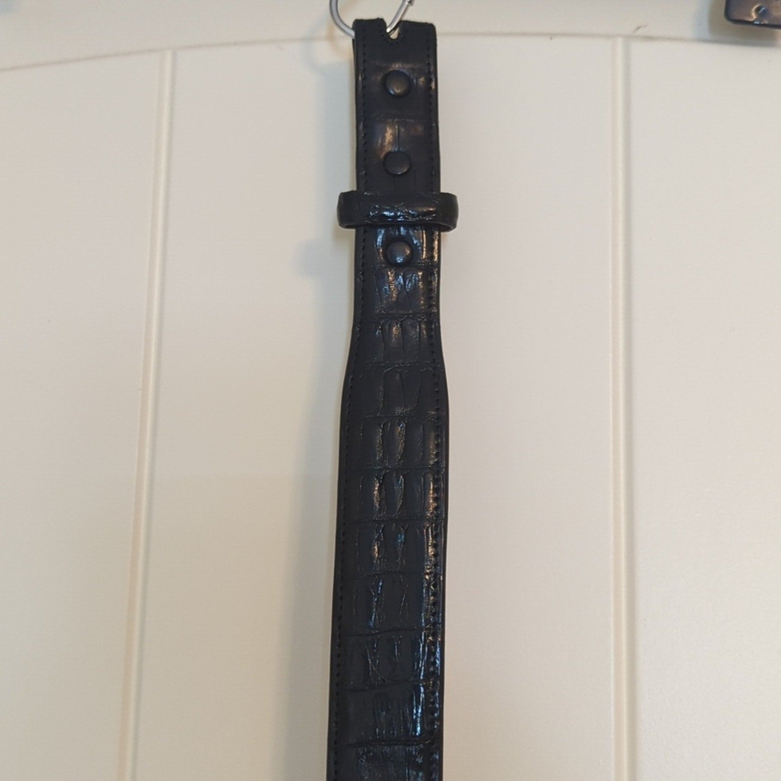 Rodney Ammons One of a Kind Custom Hand Made Black Alligator Belt Men's Size 42. 1.25" W. Tapers down to 1" at buckle. Made for your own custom buckle to be snapped in place. Pre-owned, this belt is in excellent condition. Worn a few times at most.