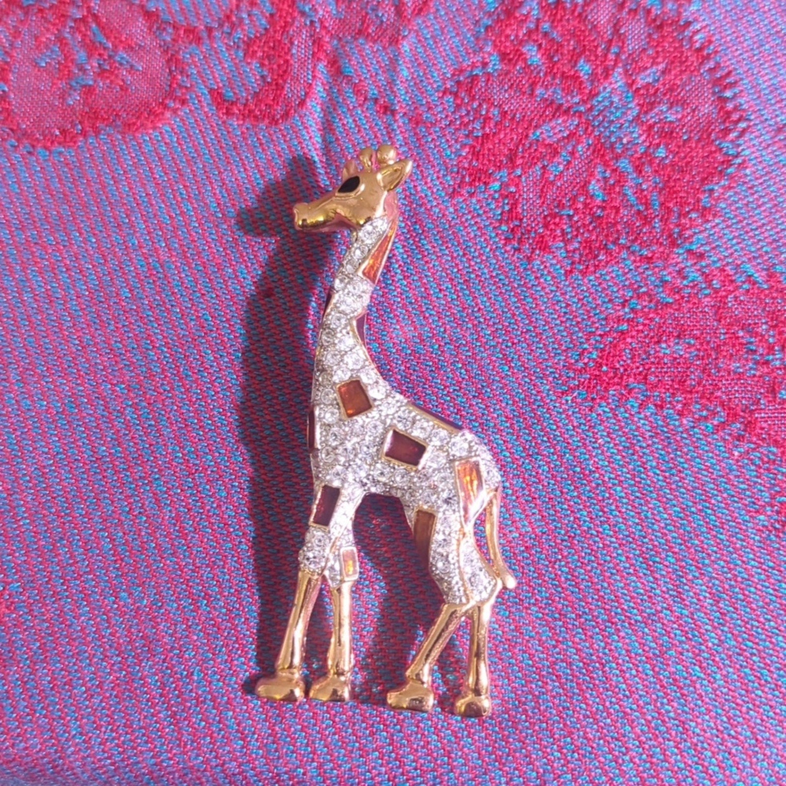 Roman's Signed Rhinestone Encrusted Brown Enameled Gold Tone Giraffe Brooch. Pre-owned, this brooch is in excellent condition. He stands tall and determined. Such a beautiful design and quality piece.