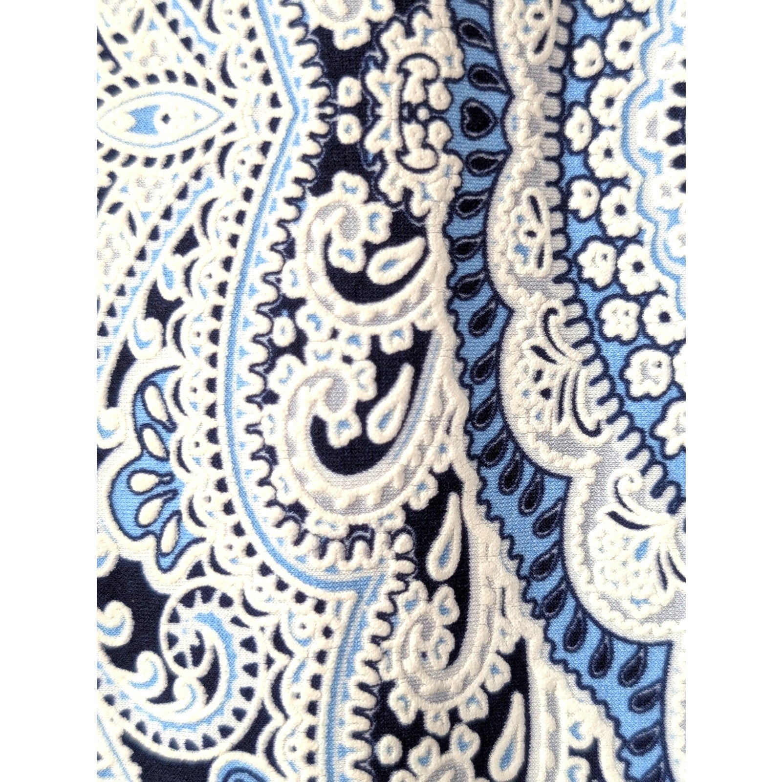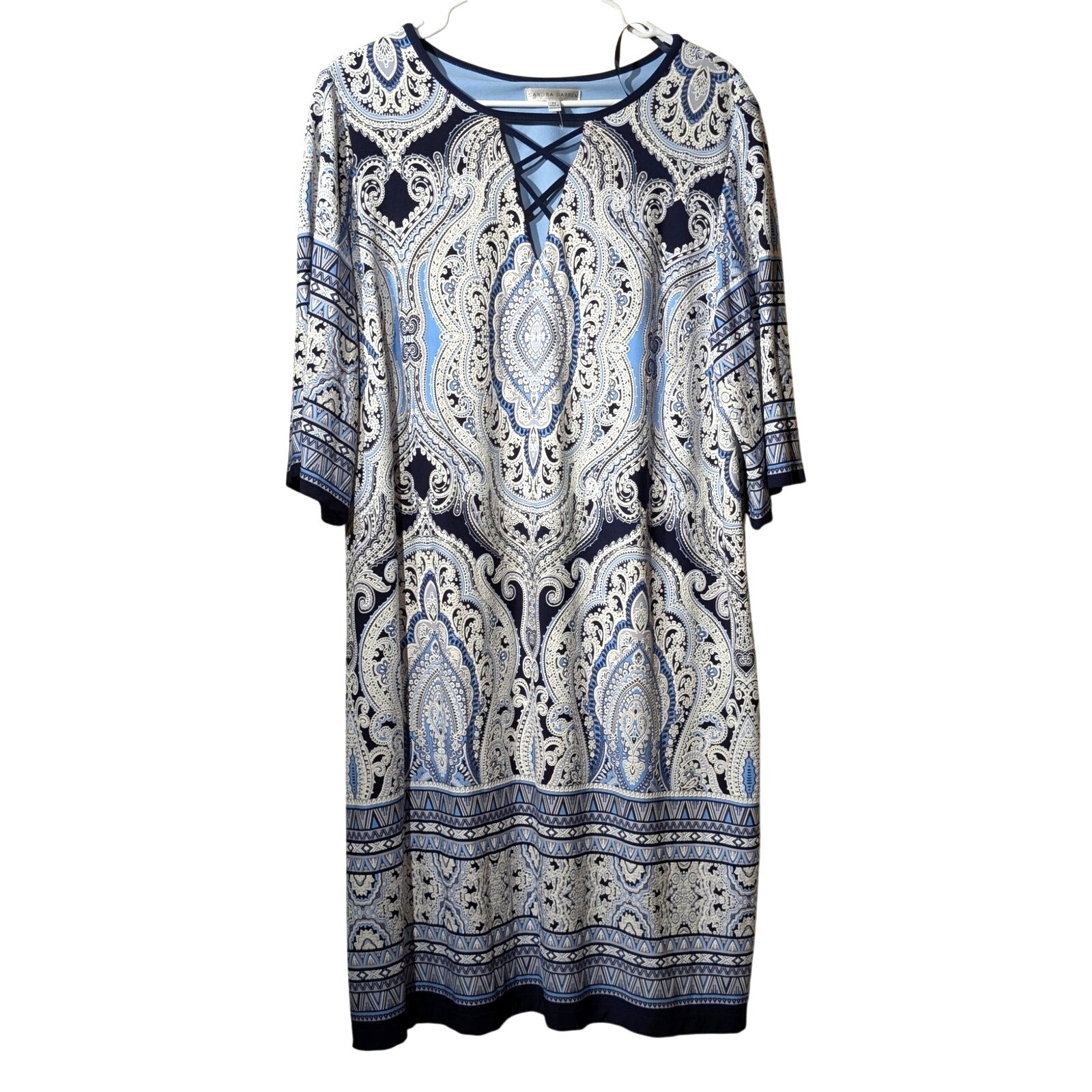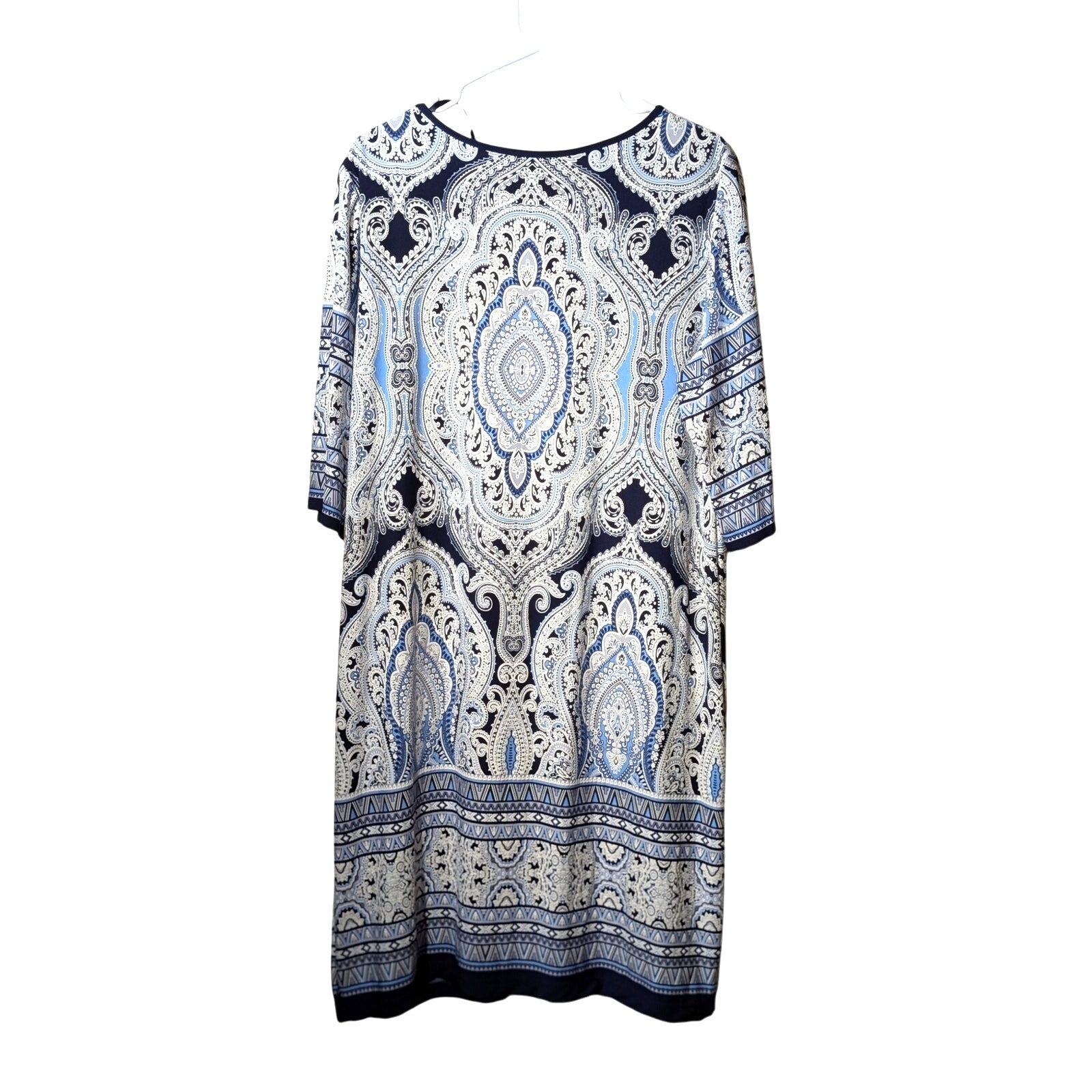 Sandra Darren Navy White Textured Mandala Shift Stretch Dress Womens' Sz 2X. Pre-owned, this dress is in excellent condition. Knee length.