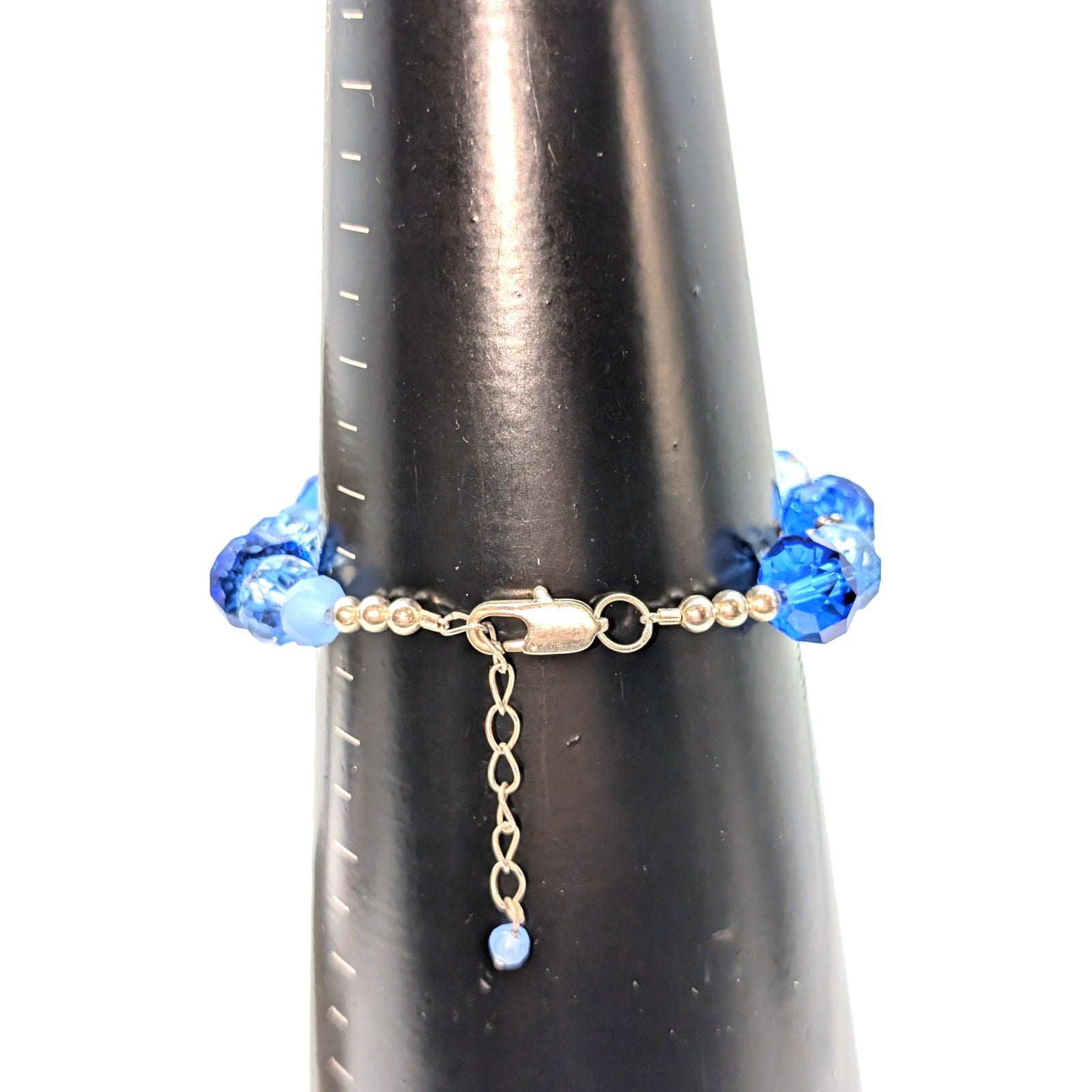 Shades of Blue Faceted Crystal Silver Tone Floral Beaded Bracelet