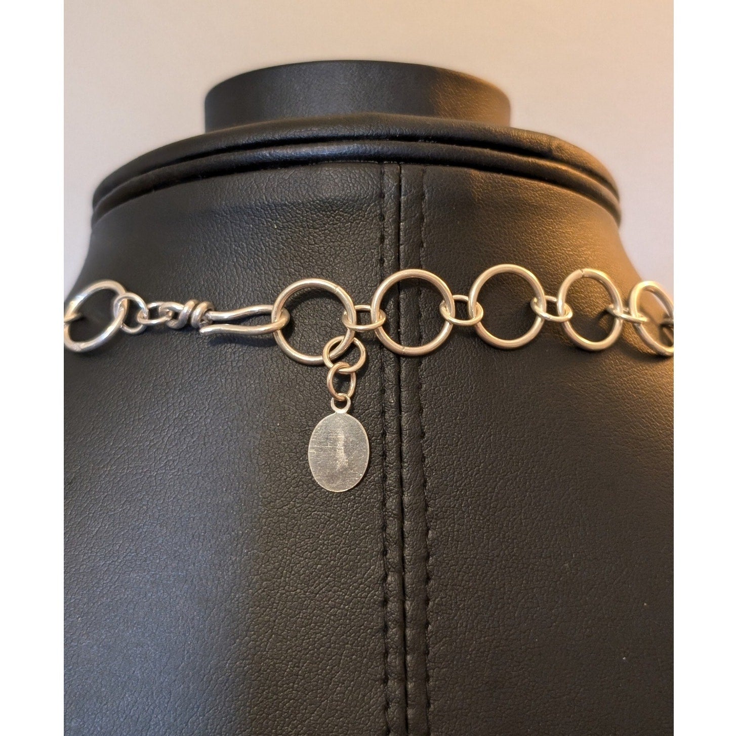 Signed 'Moon' Turquoise Brown Cream Striped Lampwork Bead Sterling Necklace