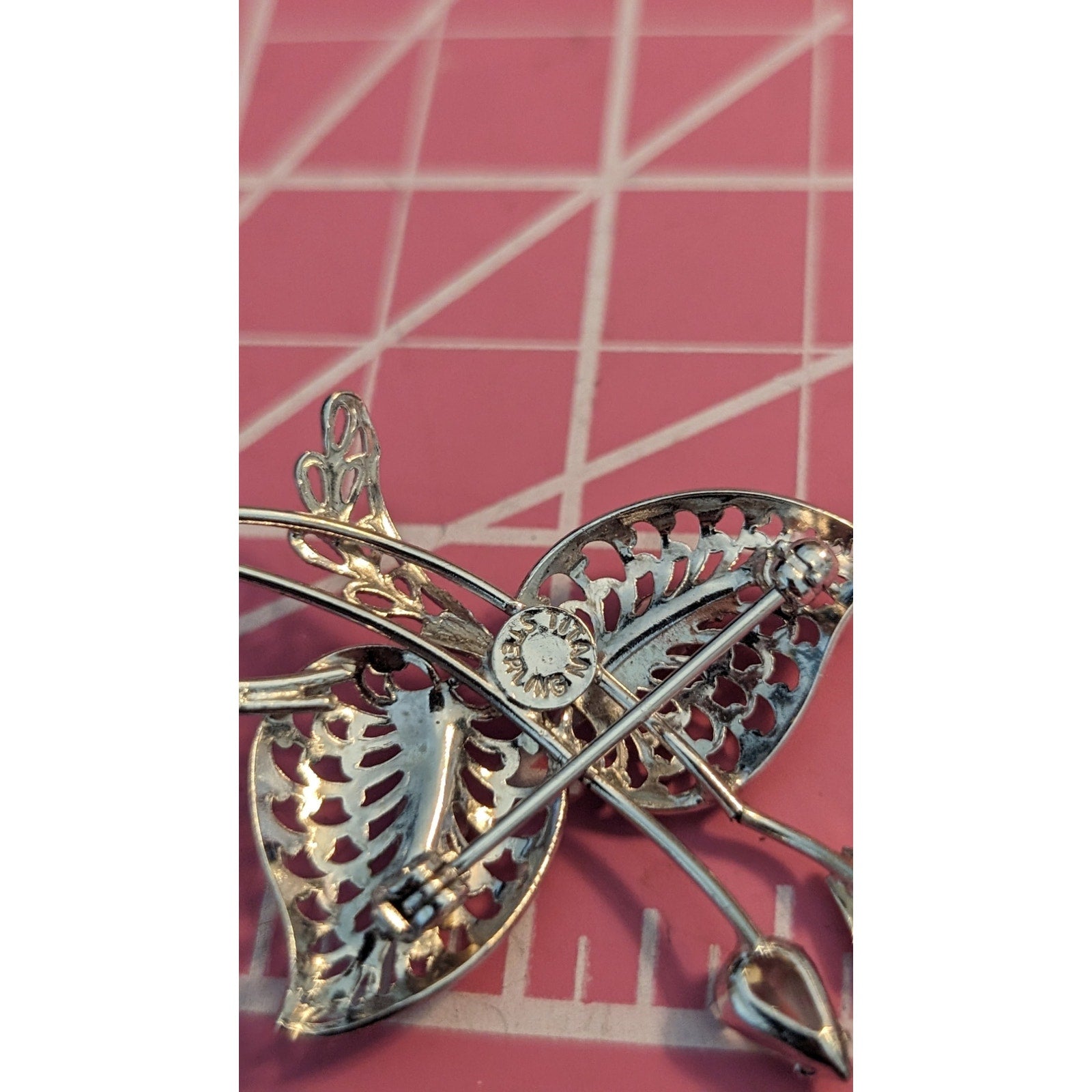 Signed Vintage Titan Sterling Filigree Rhinestone Floral Brooch. Pre-owned, this brooch is in excellent condition.