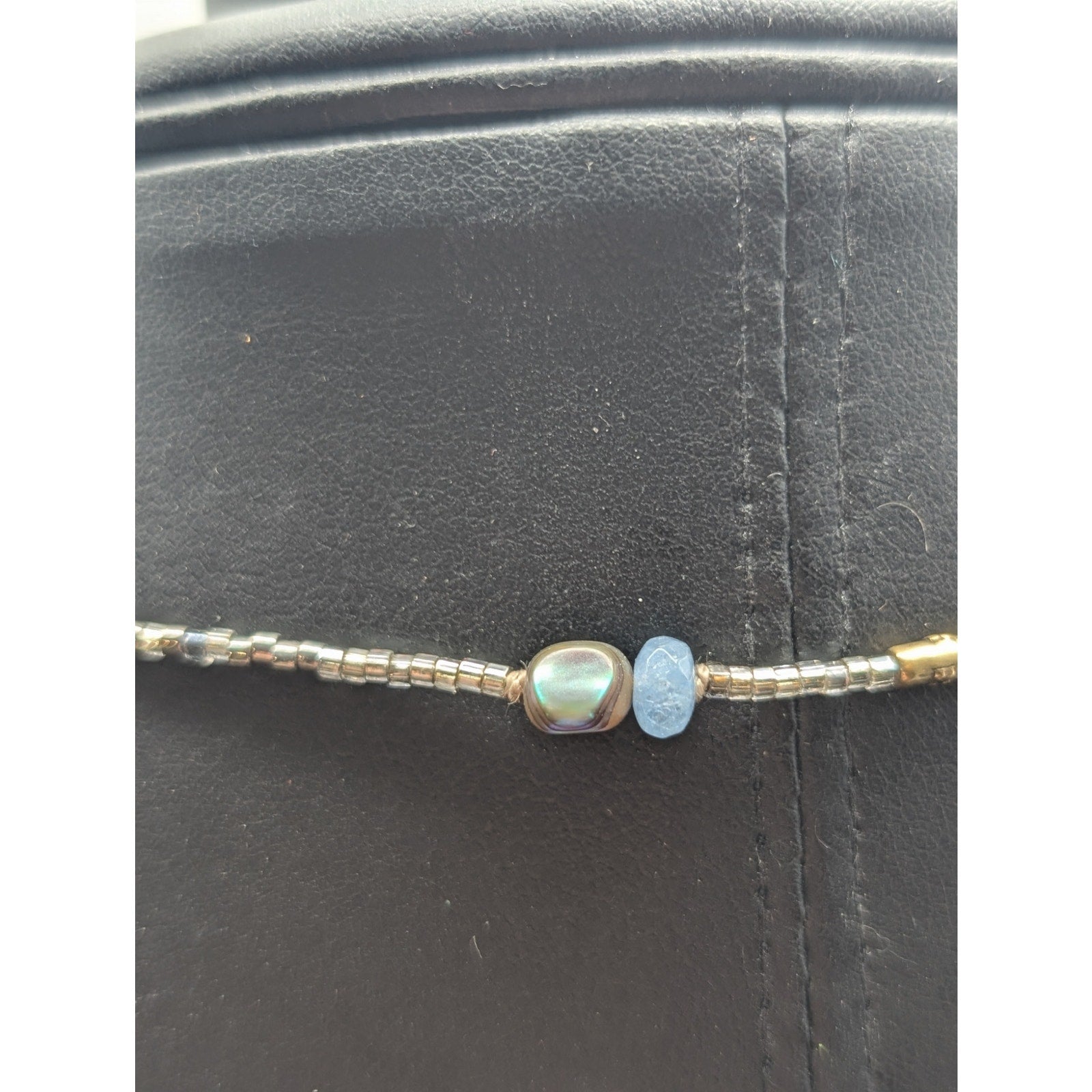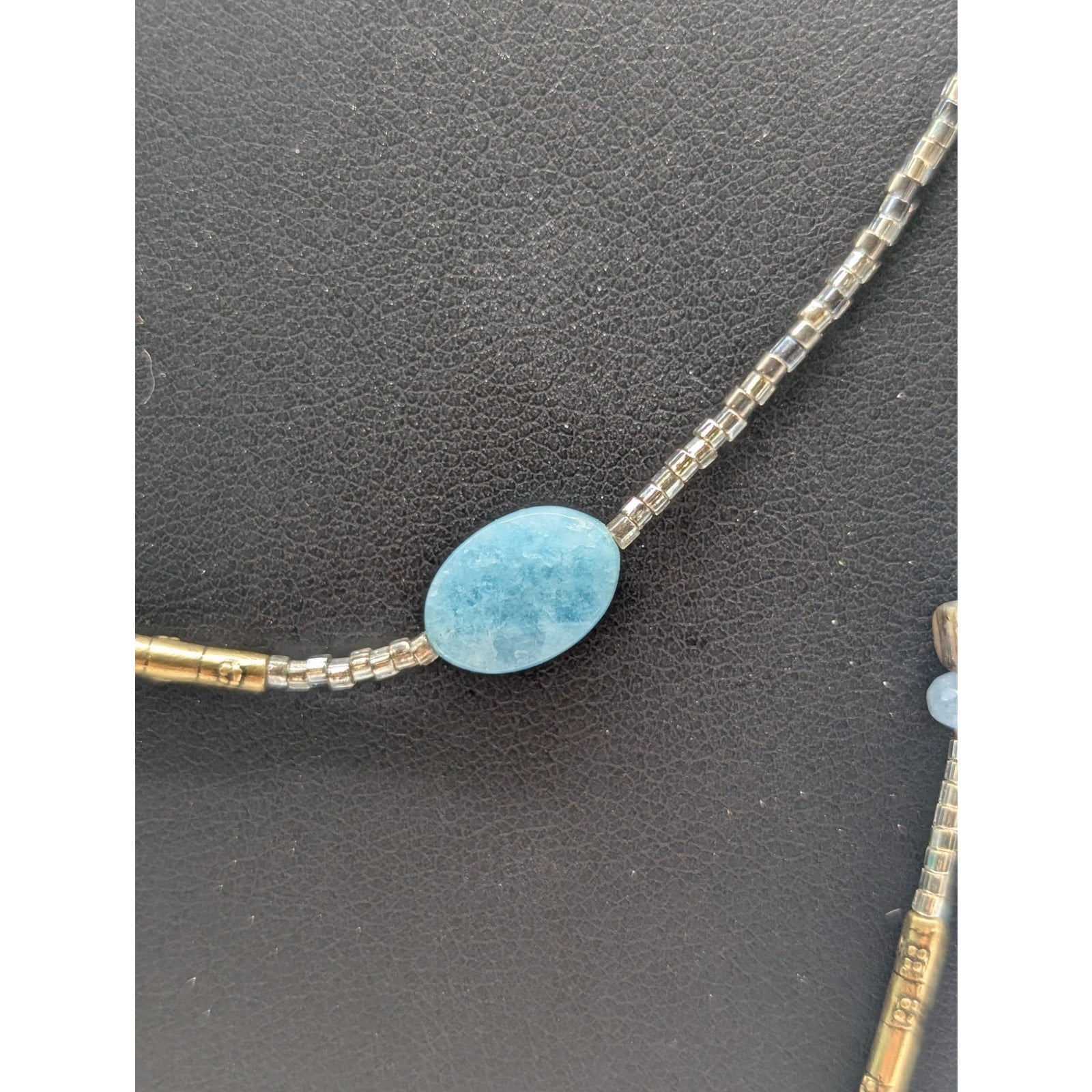 Silpada Sterling Olivia Quartzite Shell Larvikite Kyanite Glass Brass Necklace