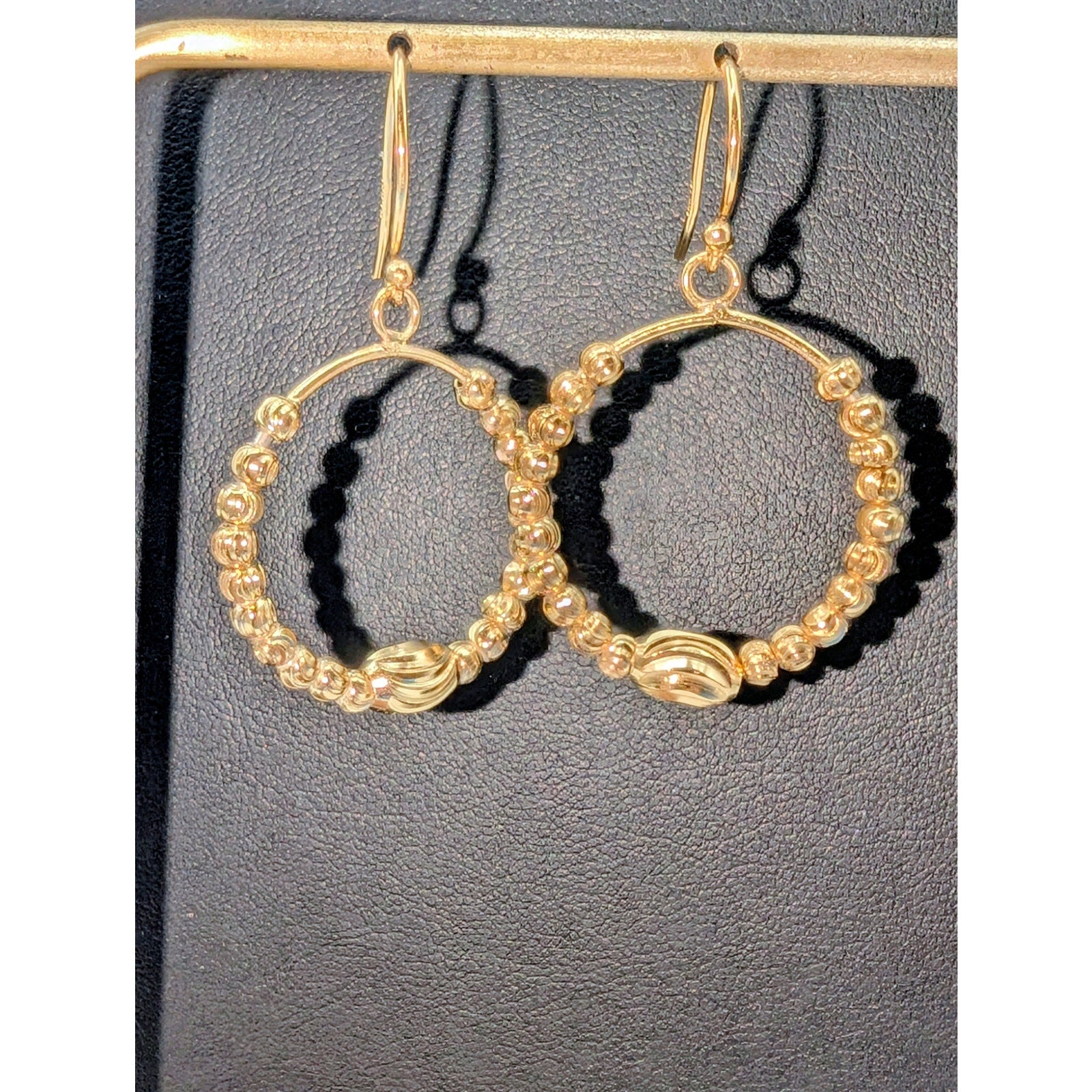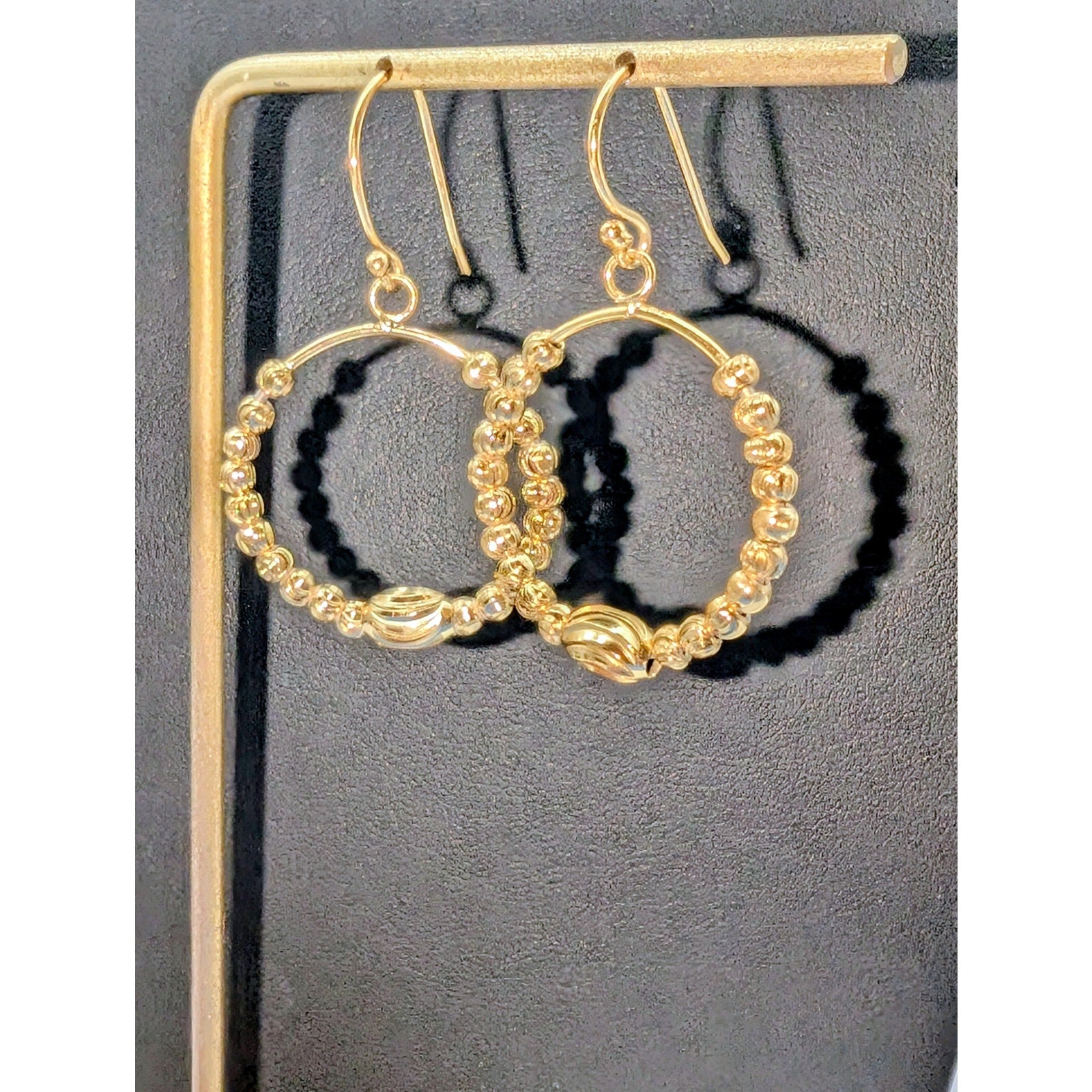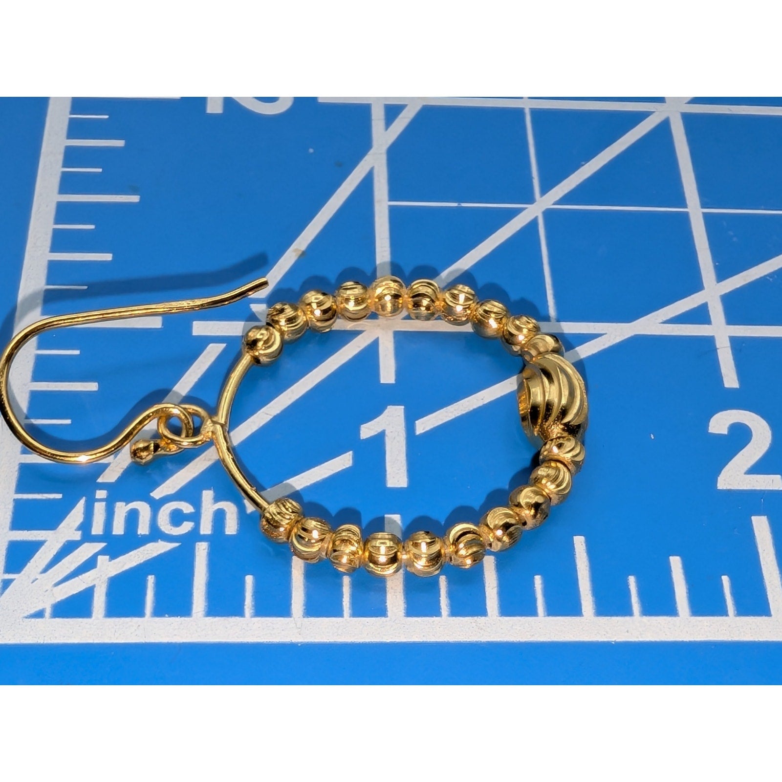 Silver Plated Gold Tone Bead Dangle Drop Hoop Pierced Earrings. Originally $45. Pre-owned, these earrings are in excellent condition. Beads are textured.