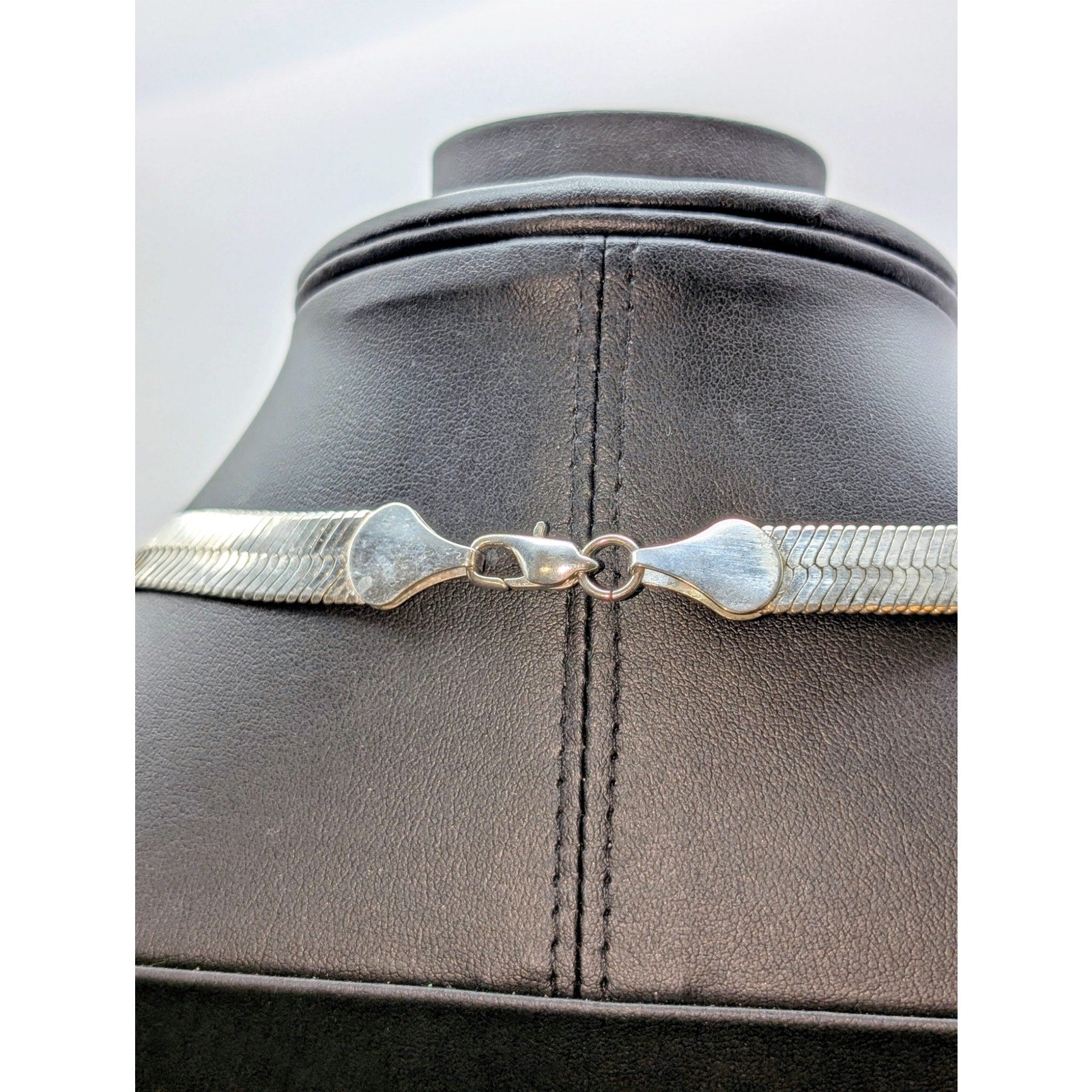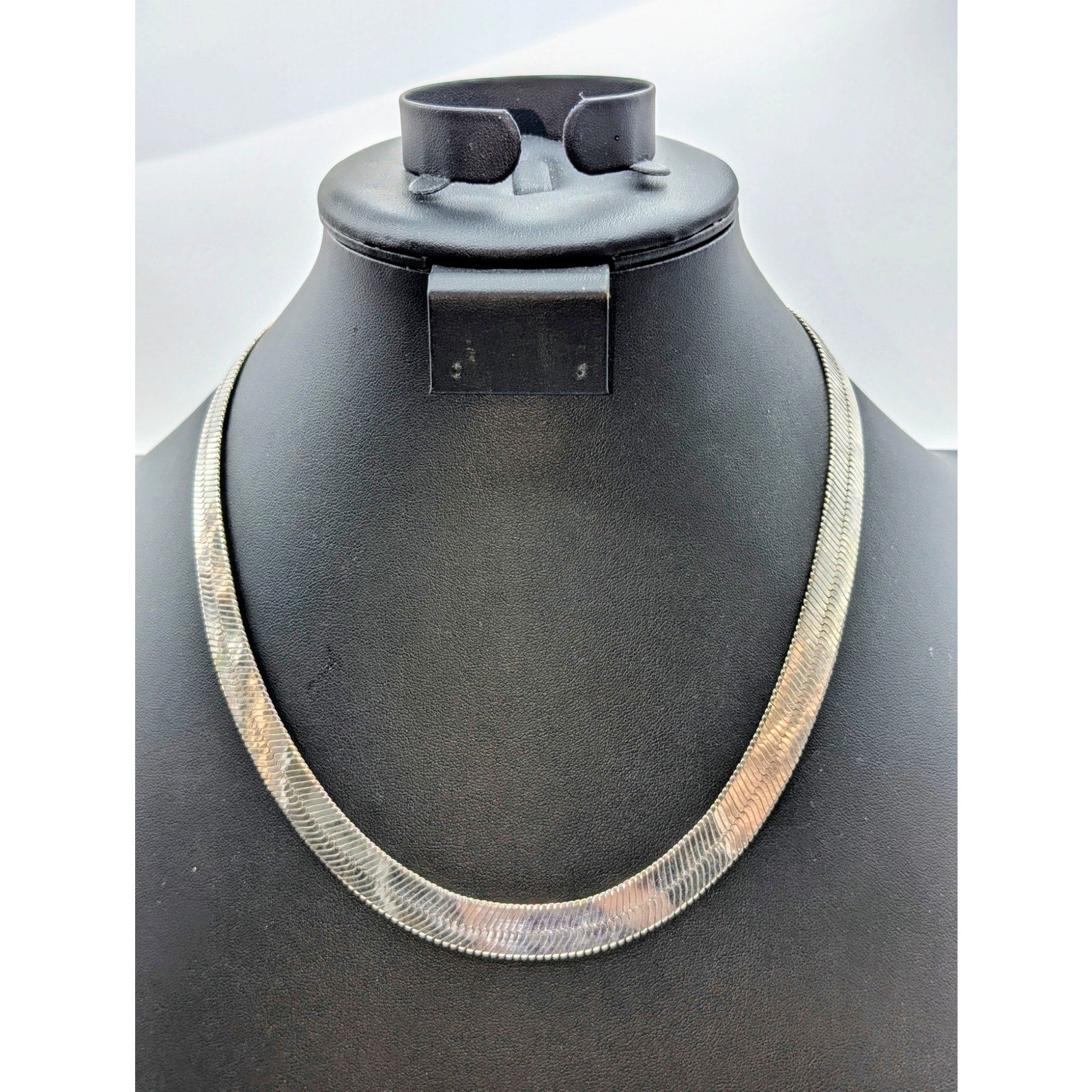 Silver Tone 20" Long Approximately 7/16" Wide Herringbone Chain Necklace. Pre-owned, this necklace is in good condition with only minimal wear. Lobster claw clasp.