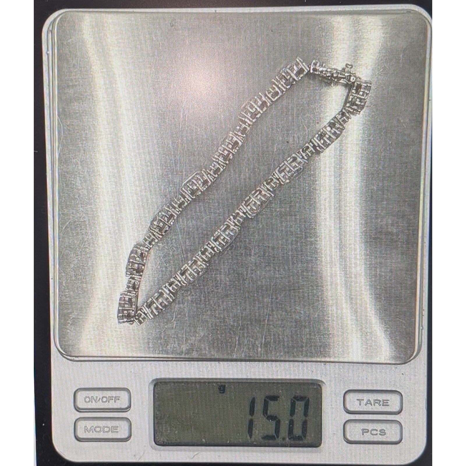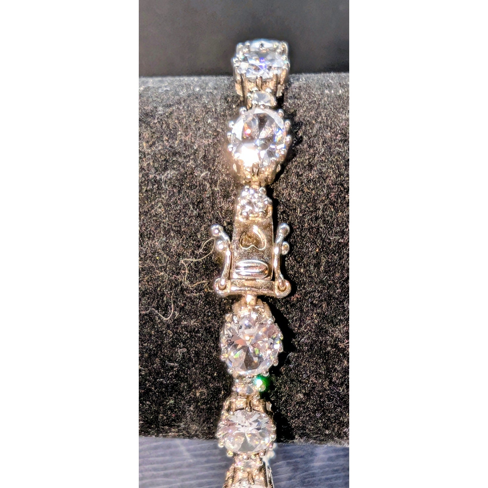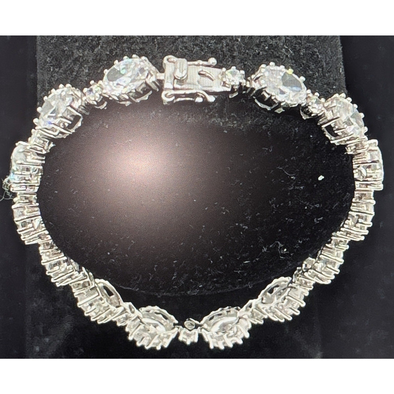 Stauer 925 Sterling Glam Oval & Round Alternating Cubic Zirconia Tennis Bracelet. Pre-owned, this bracelet with slide in clasp and two safety latches is in excellent condition. It comes in its original box.