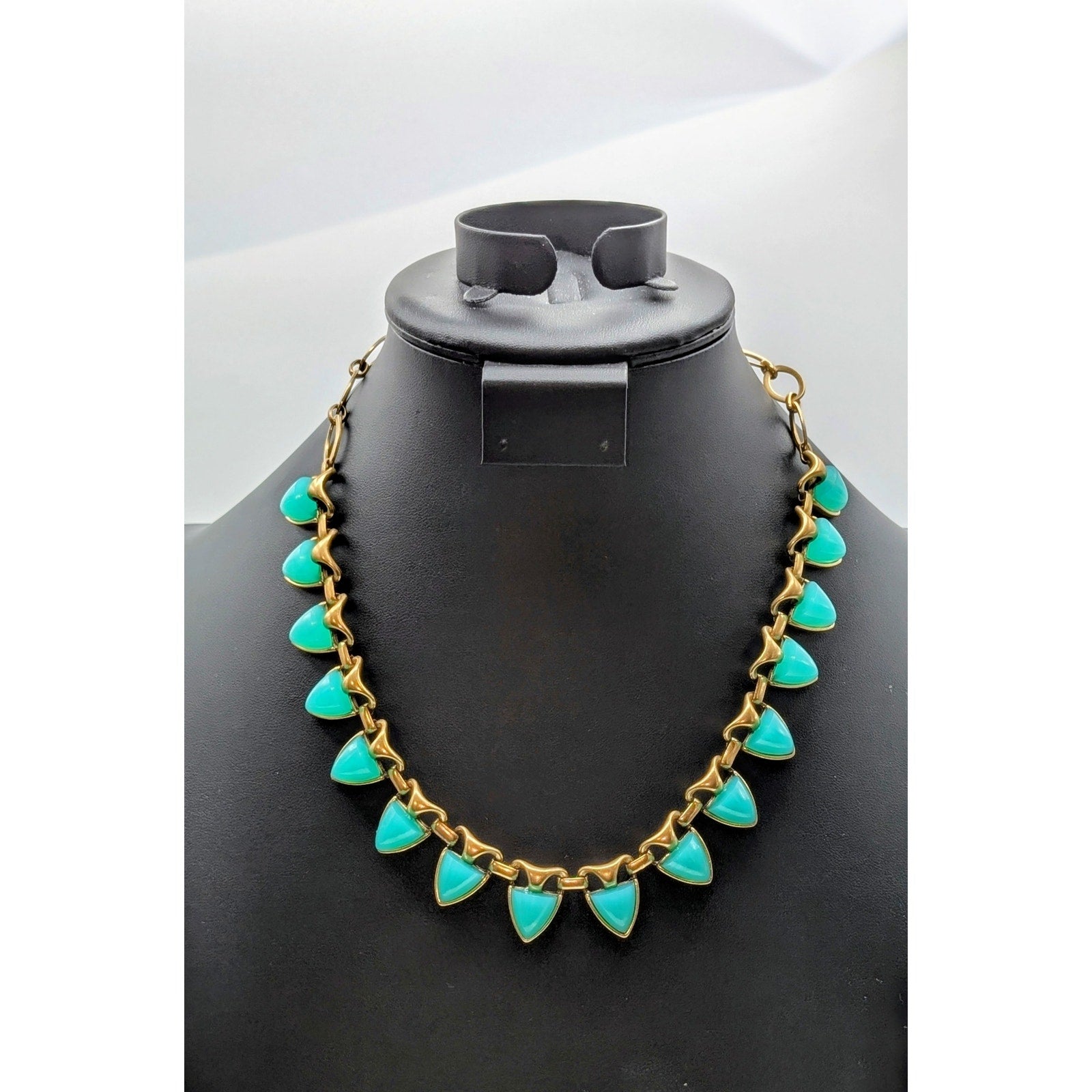 Stella & Dot Turquoise Color Egyptian Vibe Gold Tone Metal 19" Necklace . Has two clasps because it was part of a five in one necklace with removable strands. Ocean green blue lucite cabs set in bronzed gold tone metal. Really lovely piece. Pre-owned, this necklace is in excellent condition.
