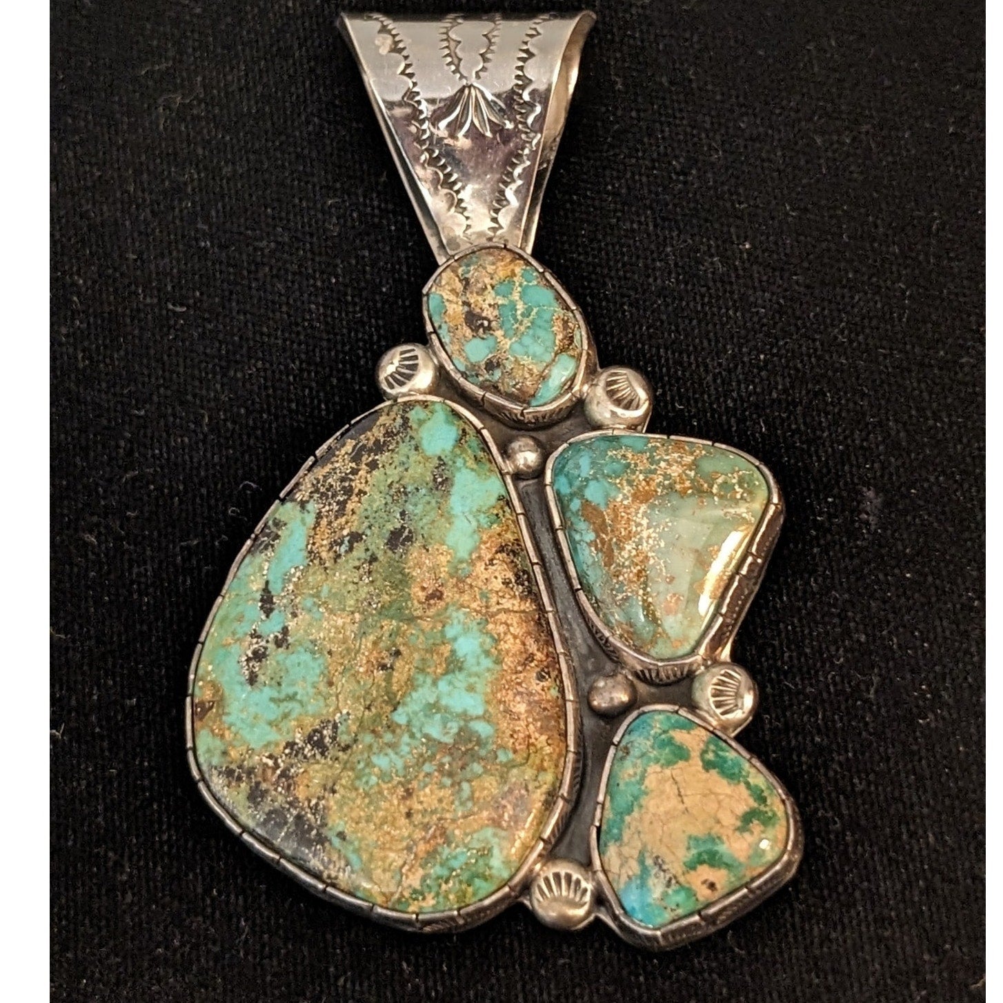 Sterling Silver Lee Bennett 4 Stone Turquoise Navajo Native American Pendant 38g
