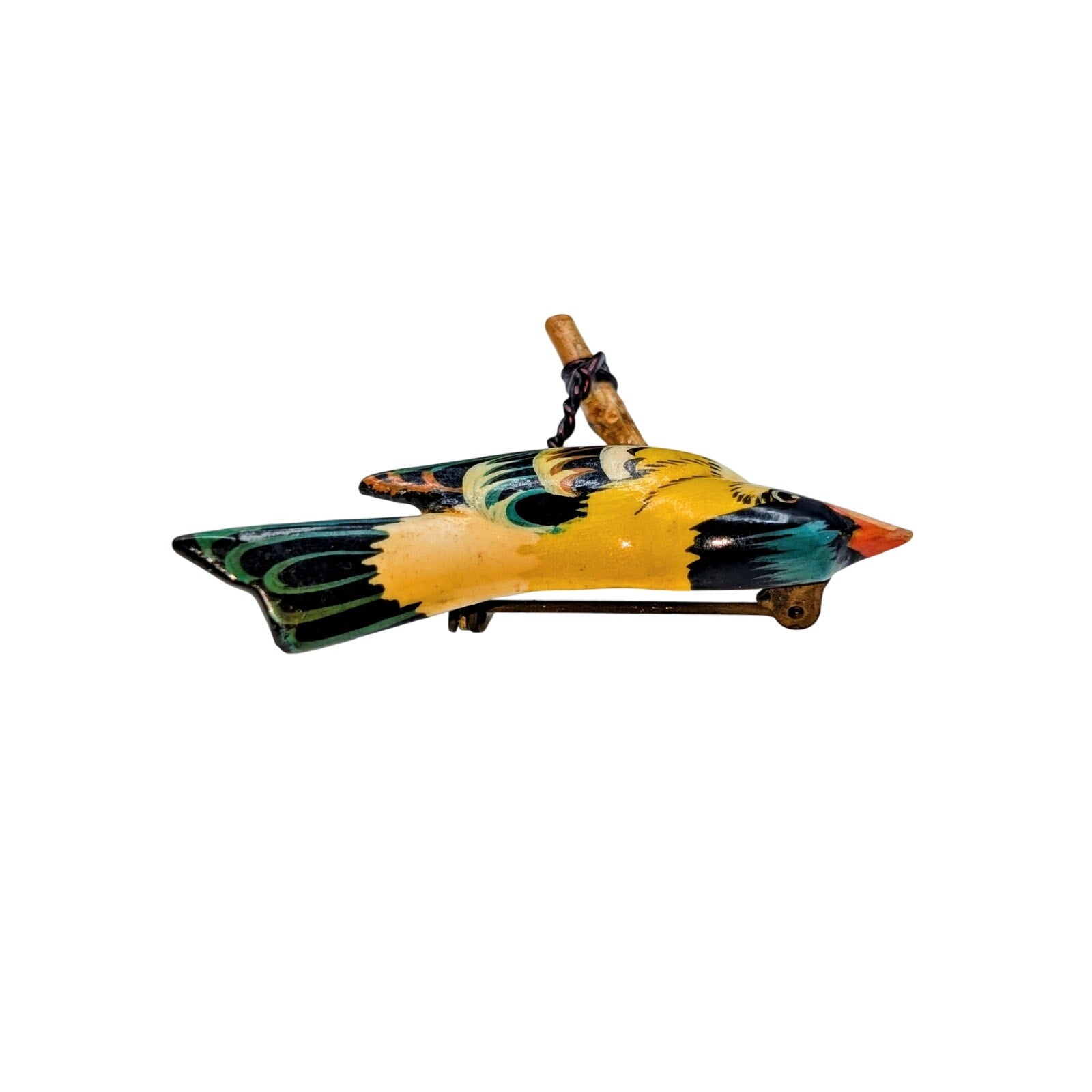 Takahashi Vintage 1950-60s Art and Woodcraft Handmade Goldfinch Pin