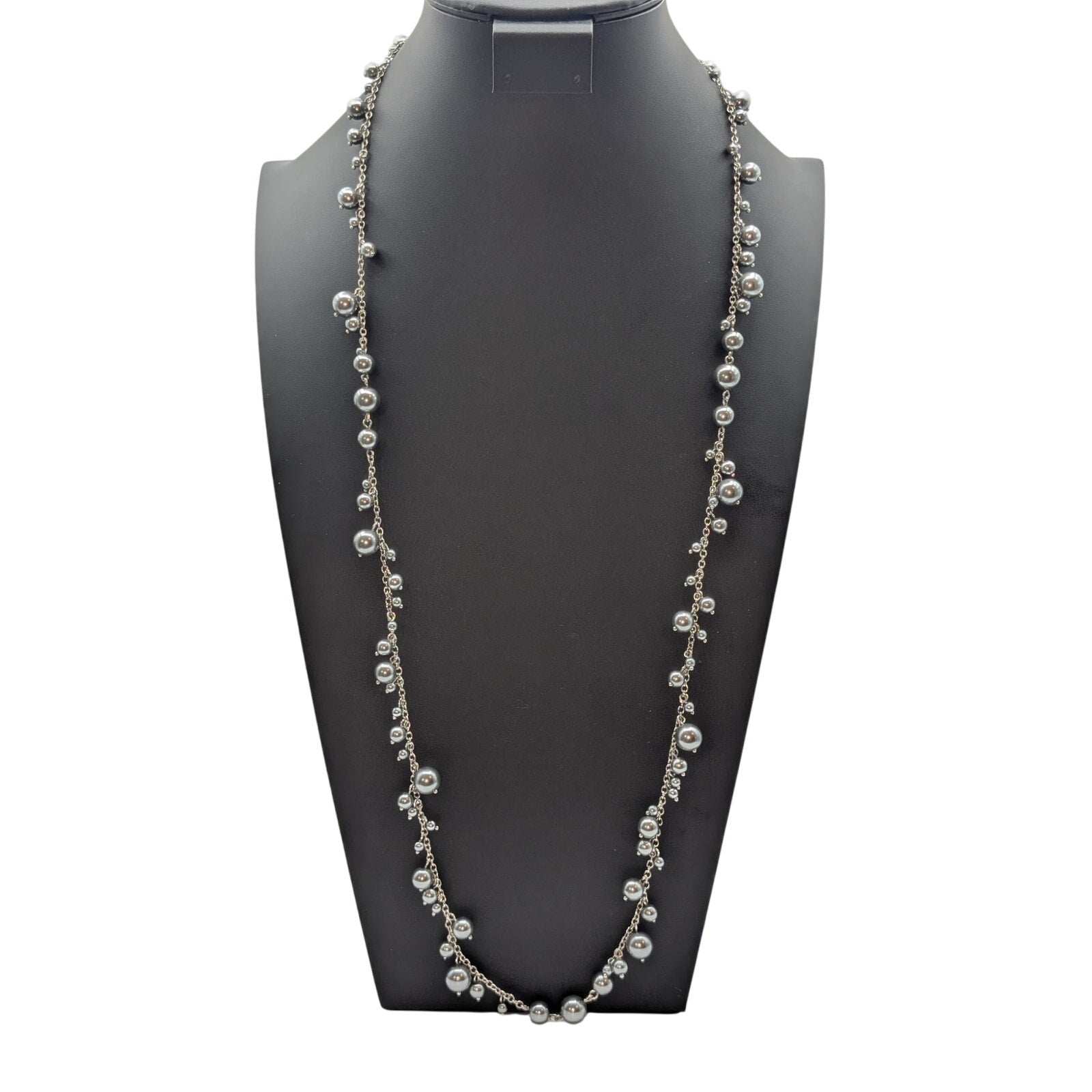 Talbot's Long Silver Tone Various Sizes Silver Faux Pearl Dangle 36" Necklace