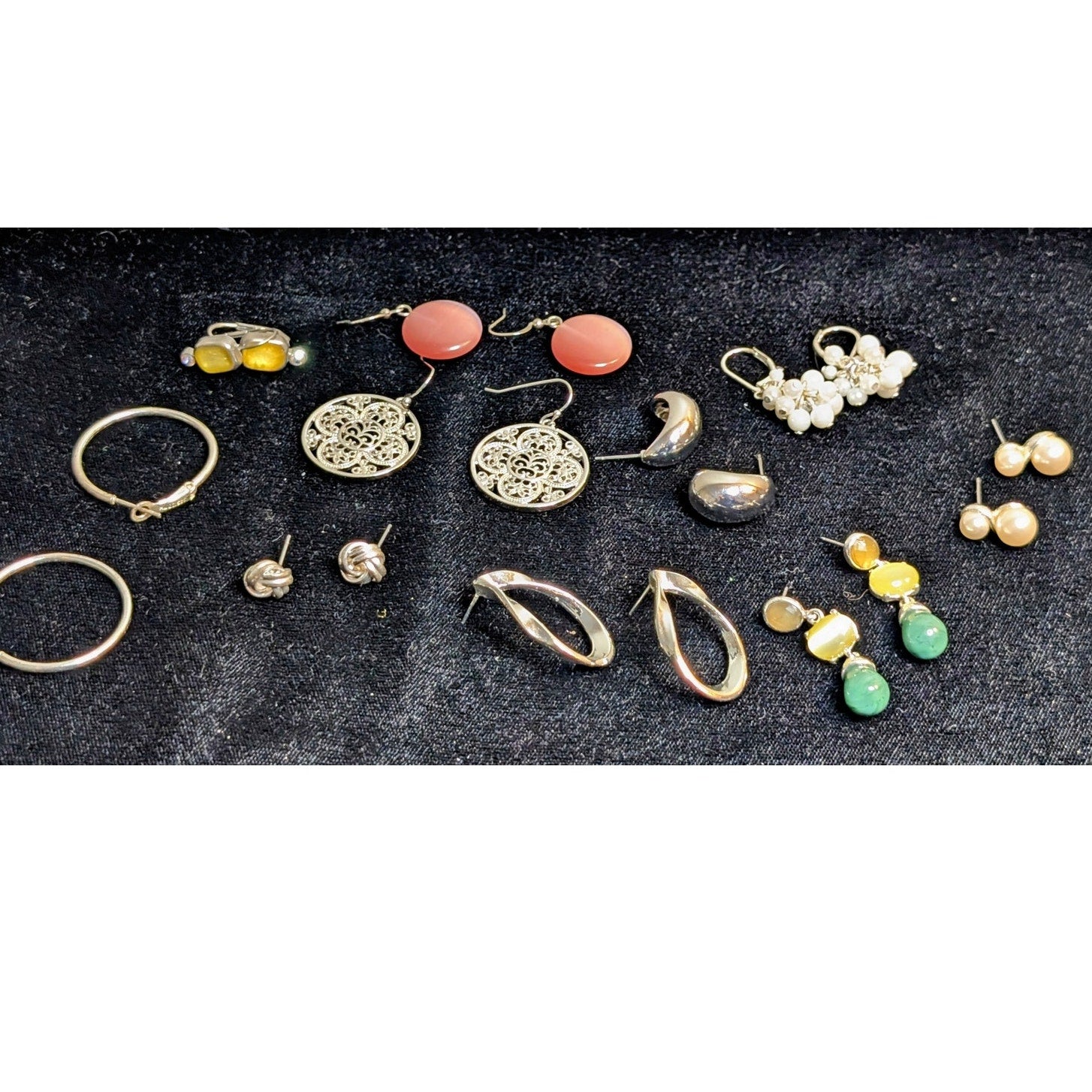 Ten Pair of Silver Tone Earring Jewelry Lot. Pre-owned, these earrings are in various conditions (all wearable to excellent).
