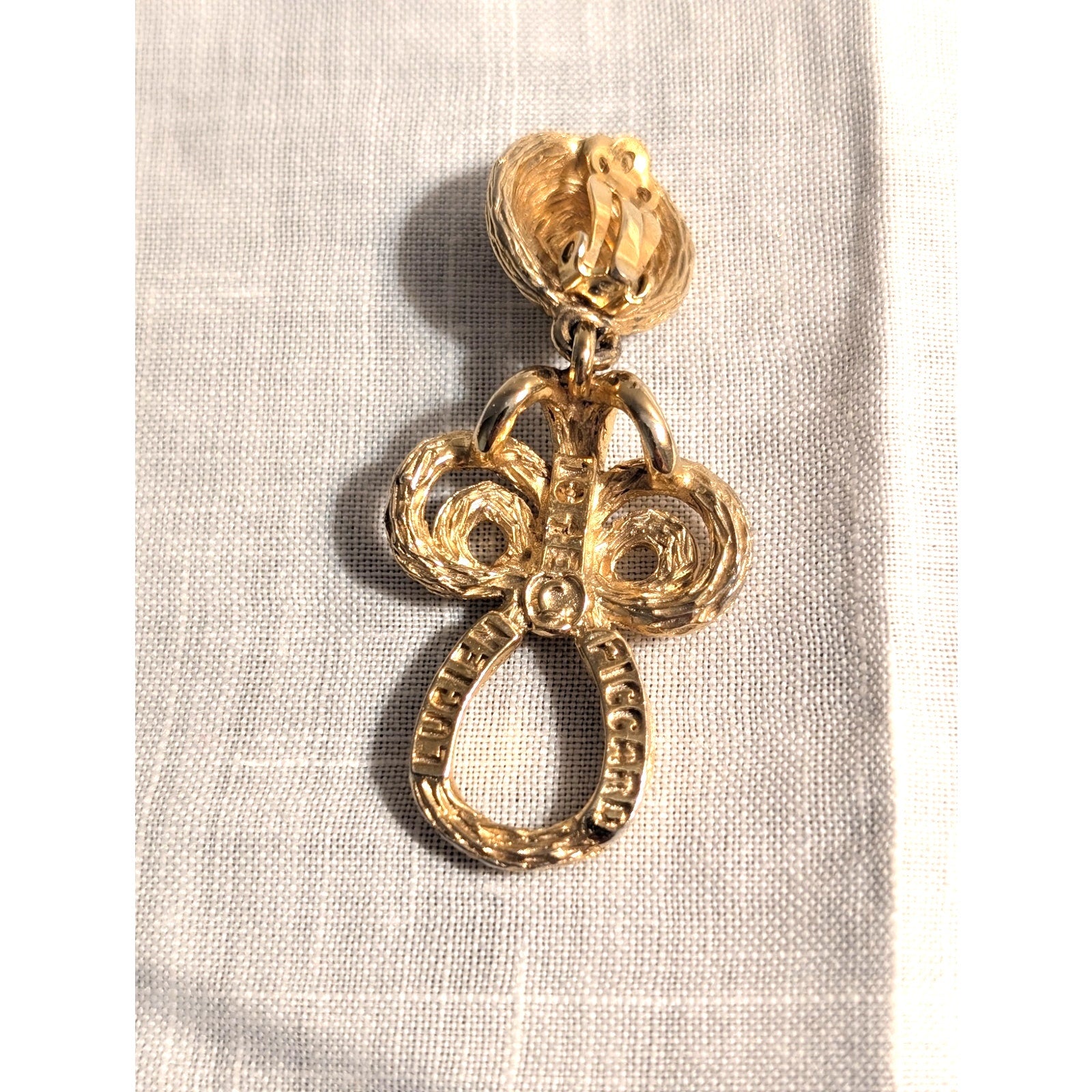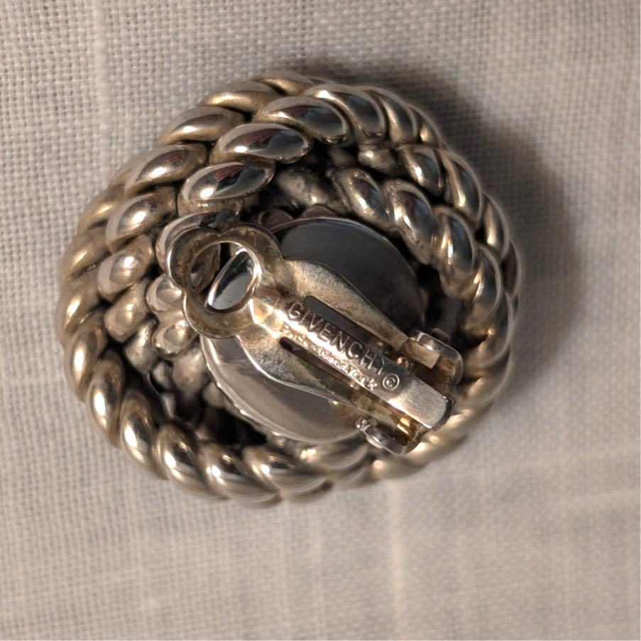 Three Vintage Designer Single Earrings Givenchy, Lucien Piccard, St. John. Givenchy Paris New York Silver Tone Rope Knot Signed Clip On Earring, Lucien Piccard Gold Tone Doorknocker Textured Polished Dangle Clip On, and Black Enamel Stripe Gold Tone St. John Clip On Earring. Pre-owned, these earrings are in overall great condition and being sold as is. Great for repurposing or if someone has a mate to one of these lovelies.