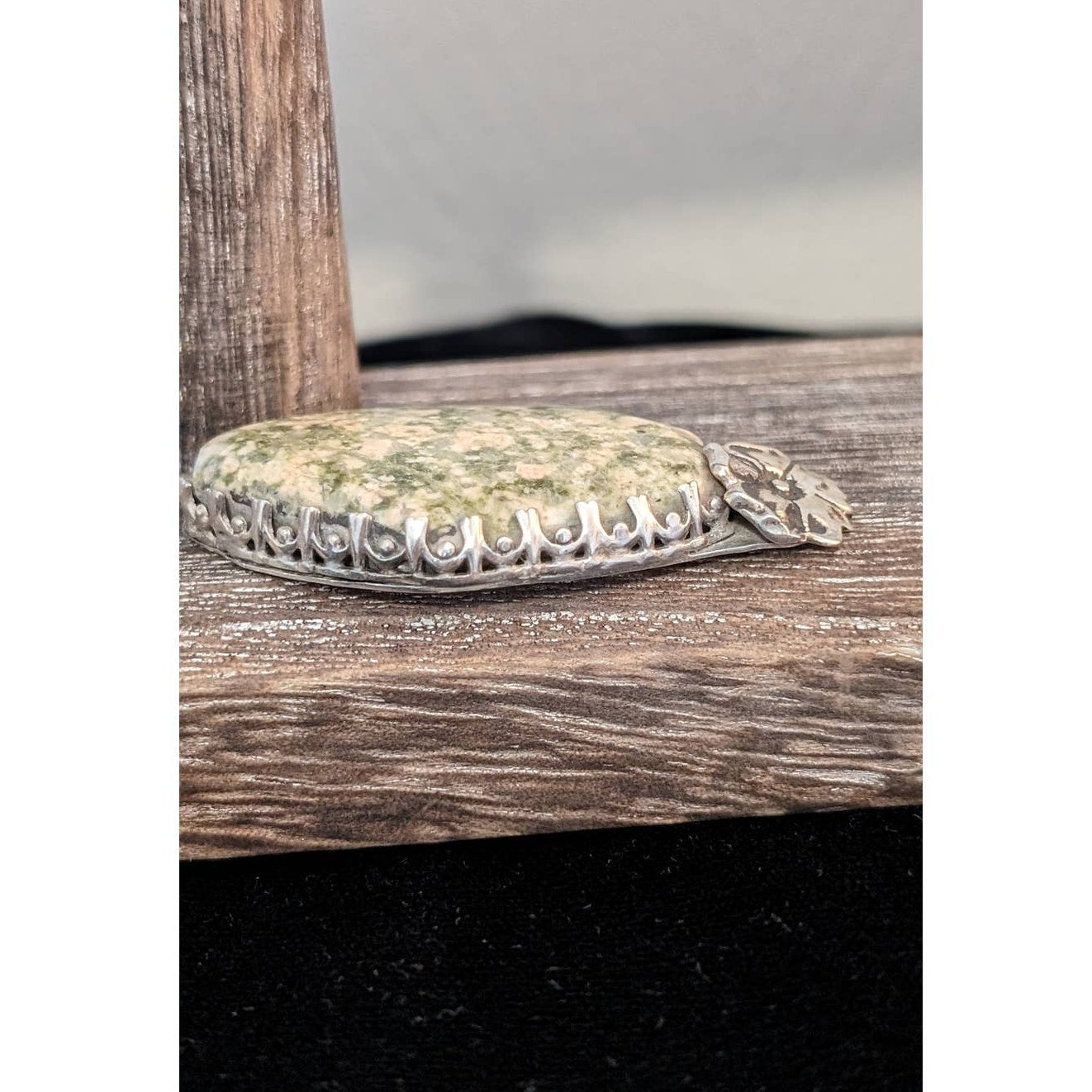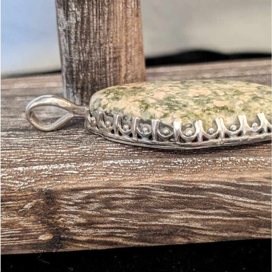 Thulite or Unakite Large Stone Pendant Set in Sterling 925 Marked 'Irene'