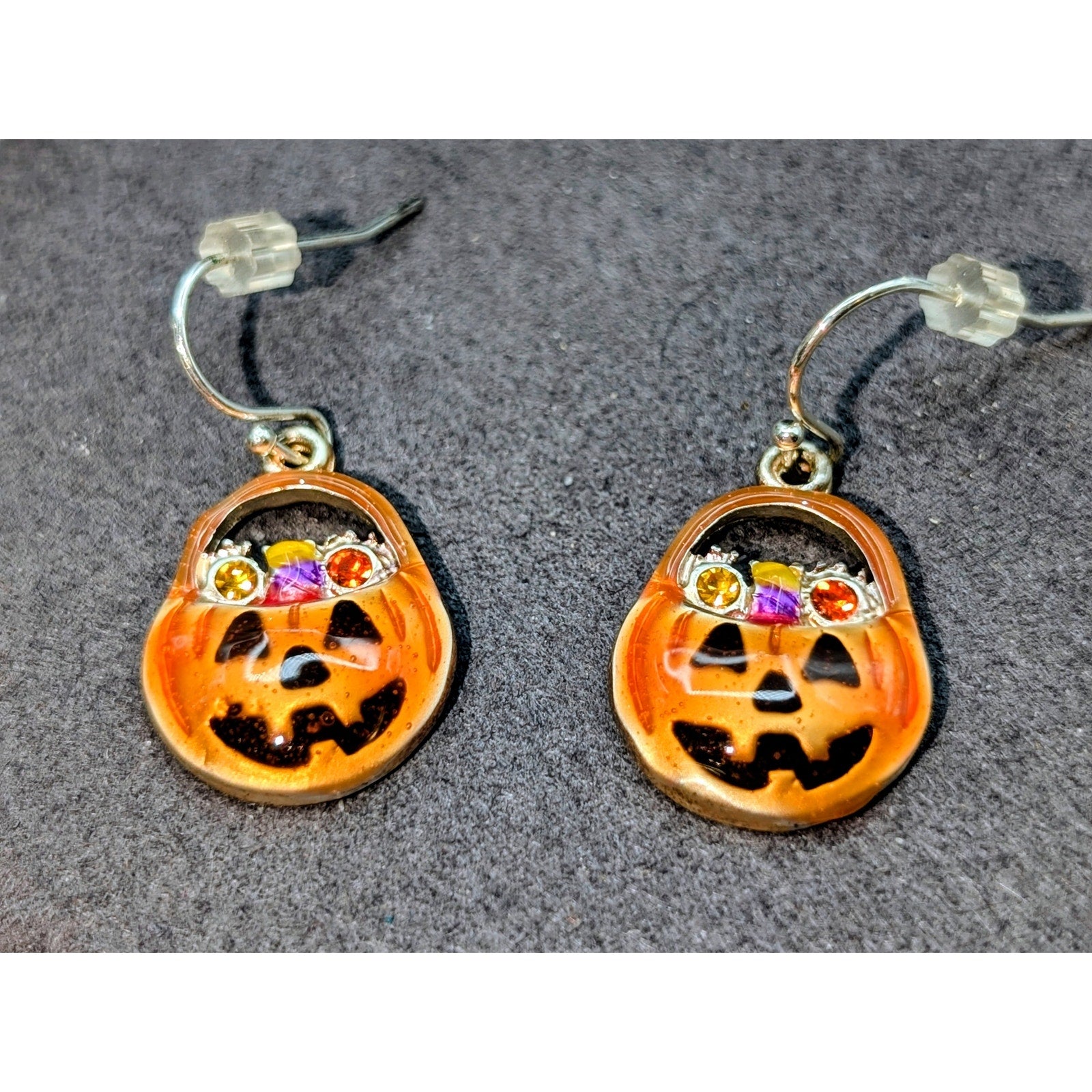 Trick or Treat Jack-O-Lantern Filled W/ Goodies Dangle Earrings. Pre-owned, these earrings are in excellent condition and just in time for Halloween fun!