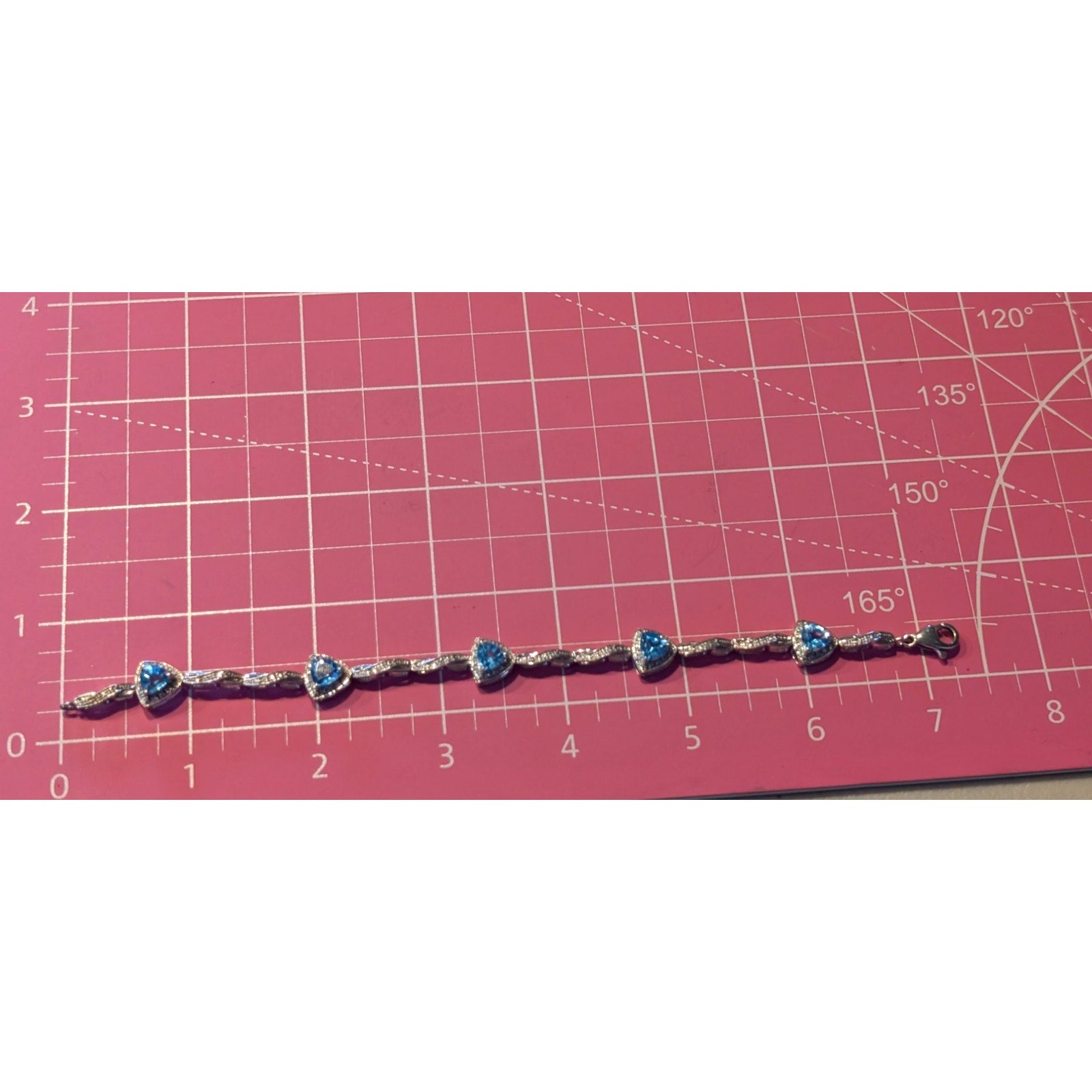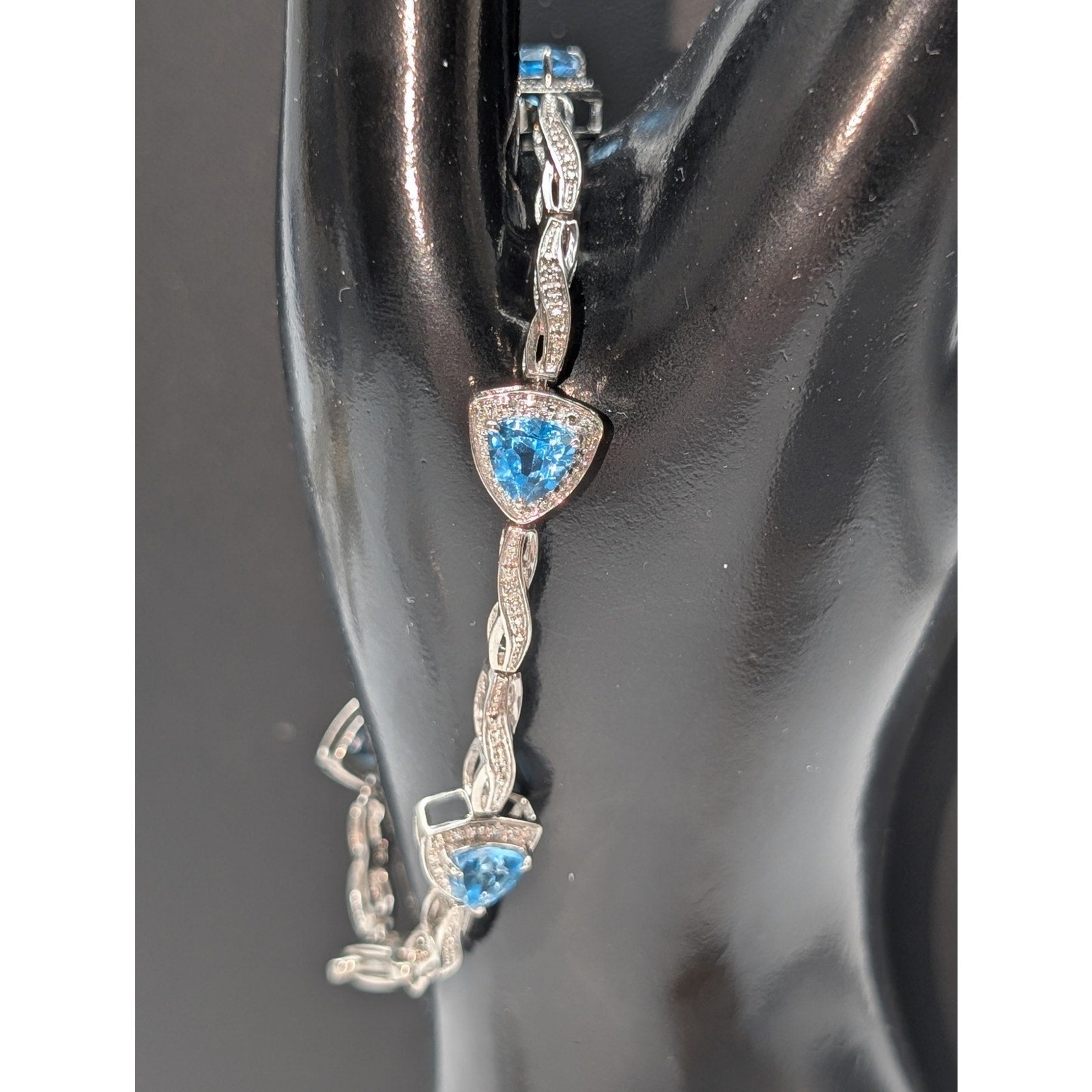 Trillion Cut Blue Topaz & Diamond Marked 925 Sterling Silver Bracelet. Pre-owned, this bracelet is in excellent condition.