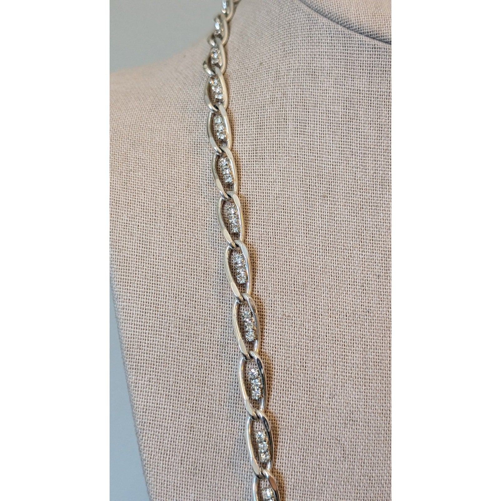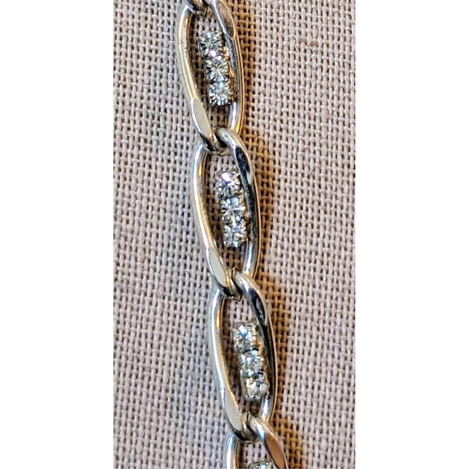 Triple Austrian Crystals Set in Silver Plated Chain Necklace & Matching Bracelet. Foldover clasps on both. 6mm wide. Necklace is 24" long and bracelet is 7.5" long. There is so much sparkle in this set but tastefully done so as to be able to wear every day as your signature look. Pre-owned, this set is in excellent condition.