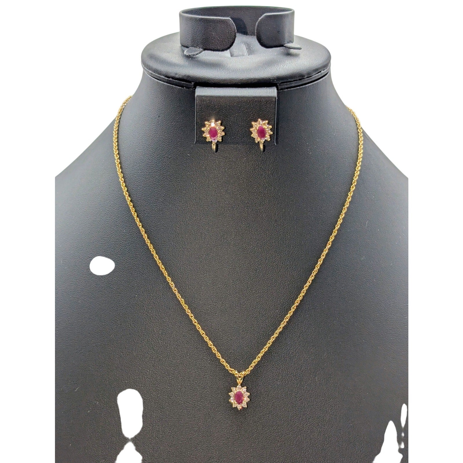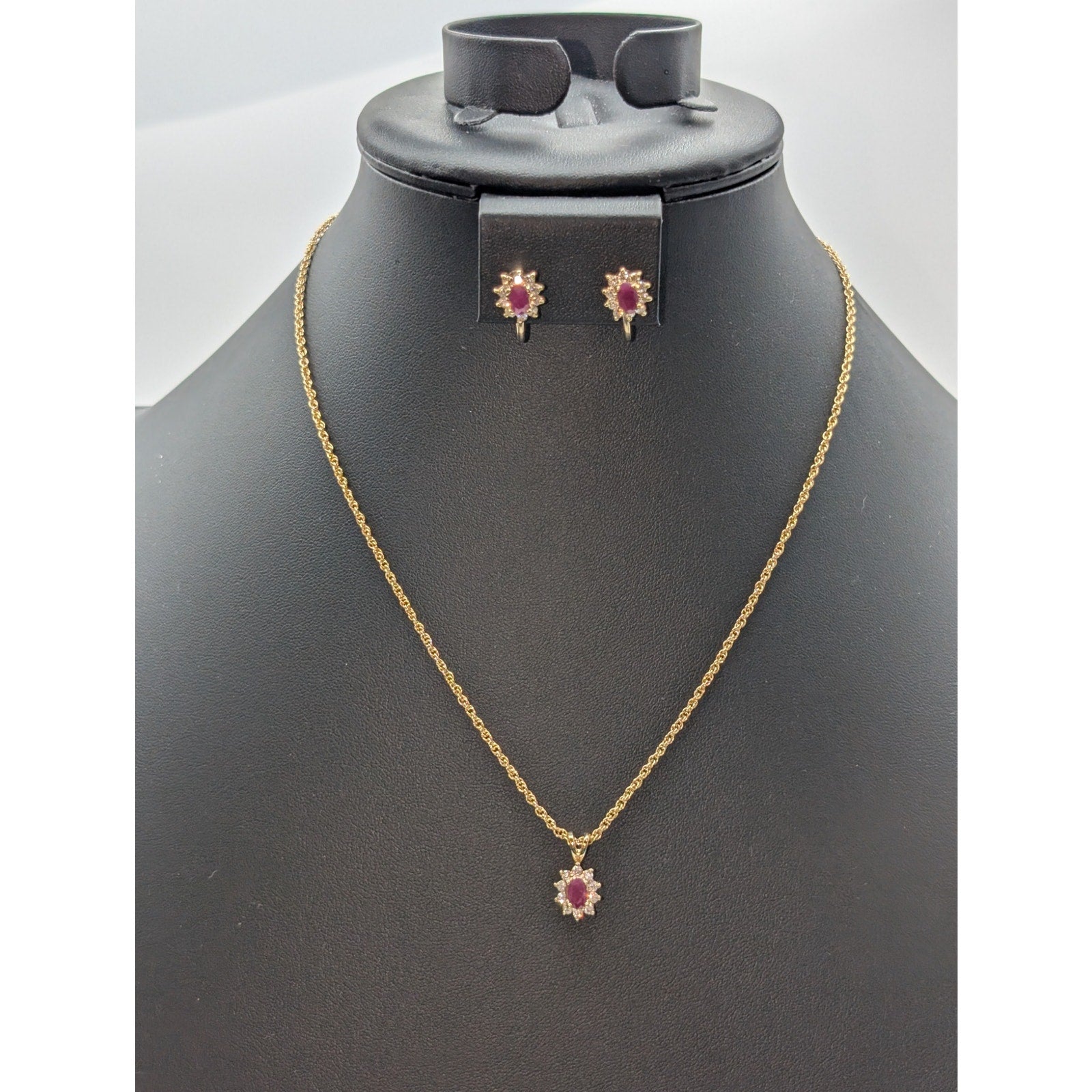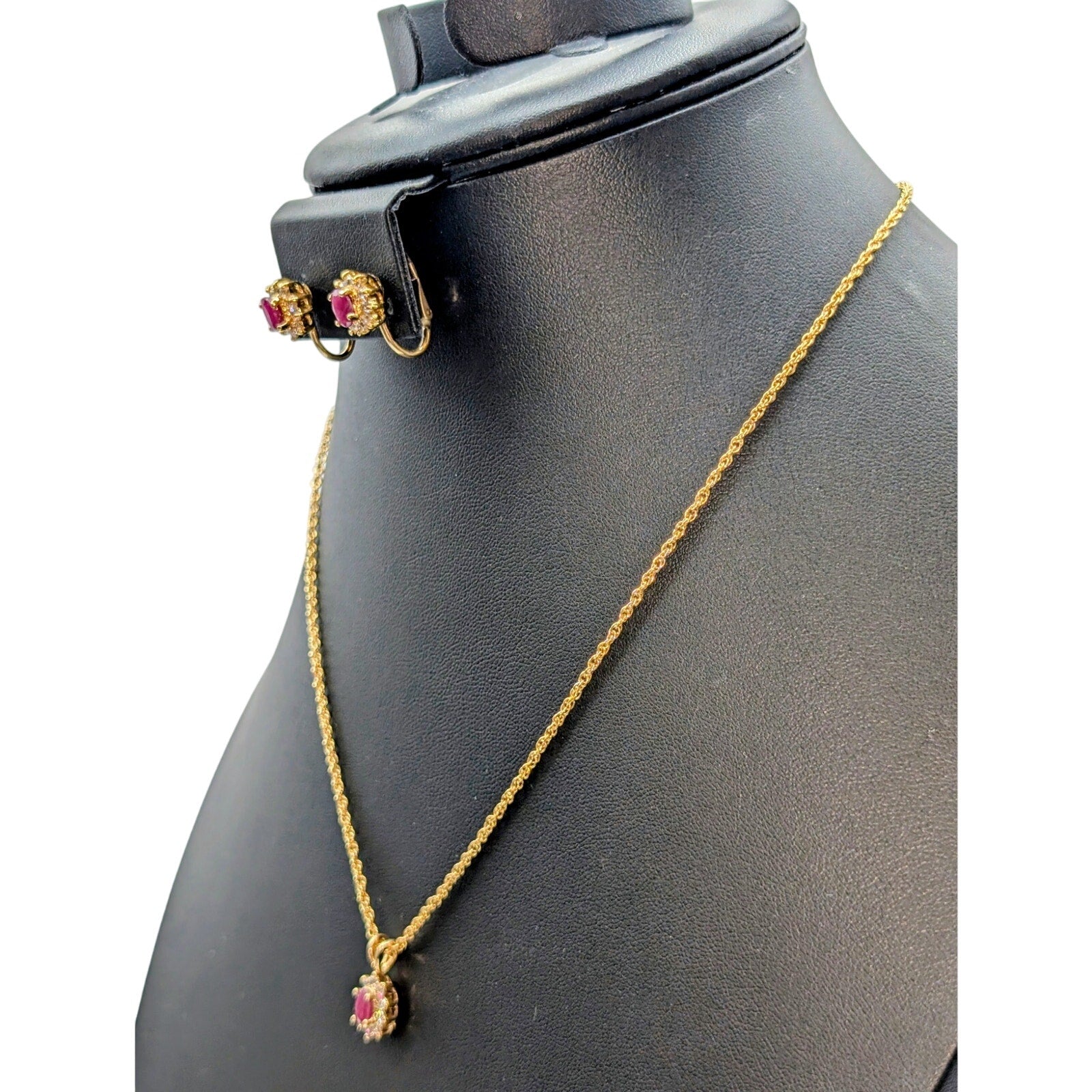 Vintage 1/20 14k Lab Created Ruby White Spinel Gold Tone Necklace & Earring Set