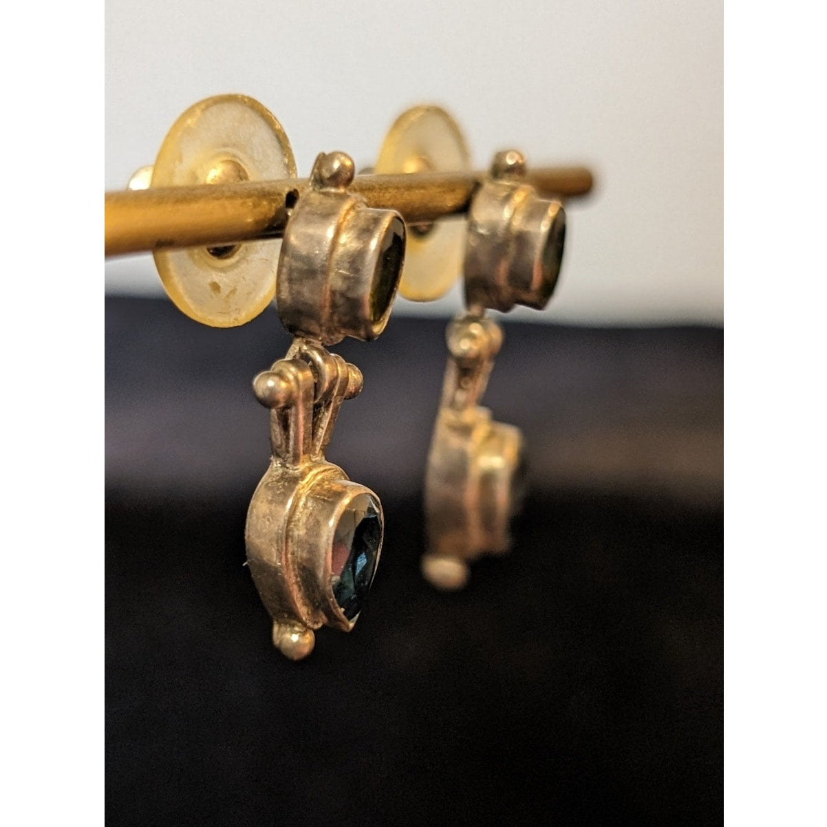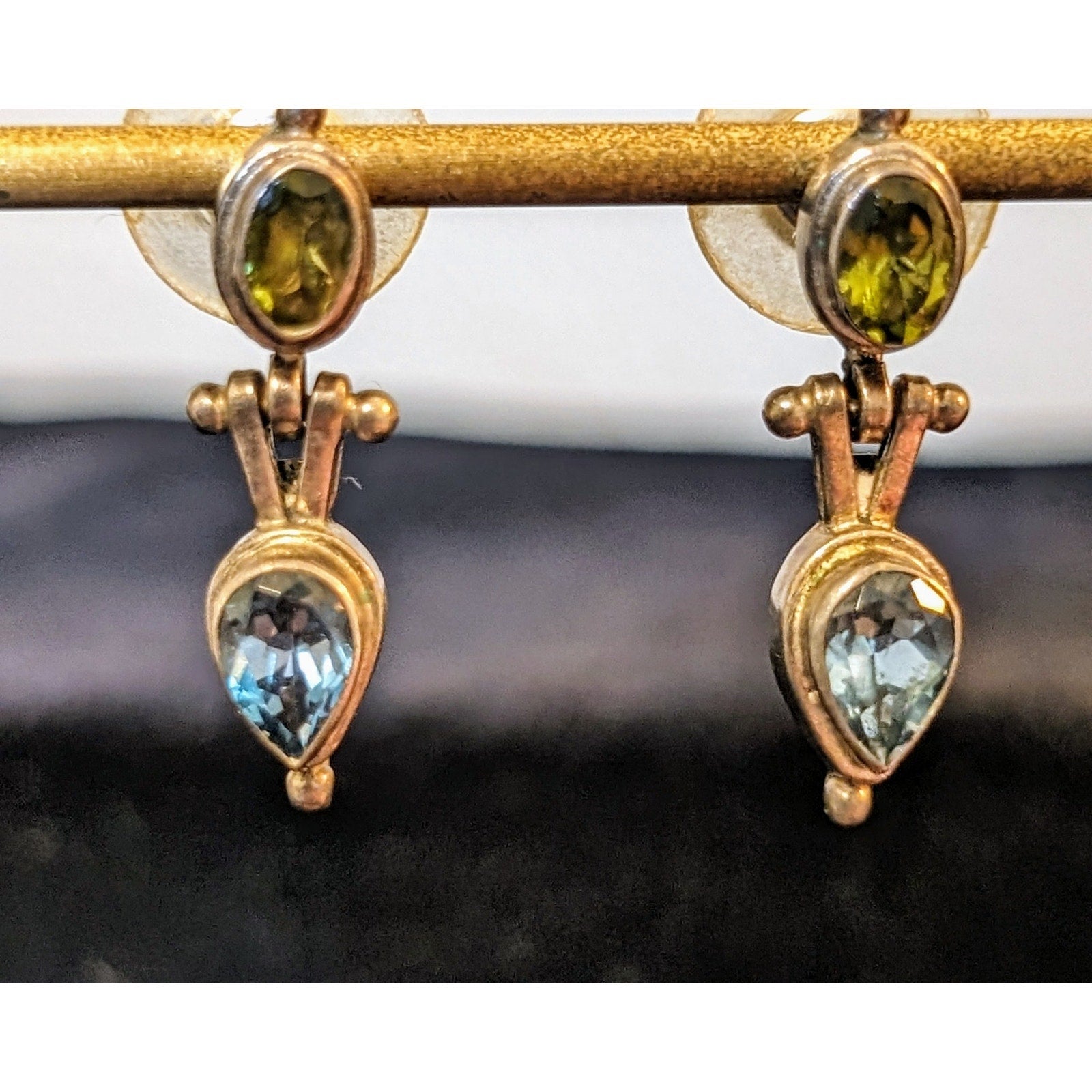 Vintage 1990s 925 Sterling Peridot & Blue Topaz Hinged Dangle Post Earrings