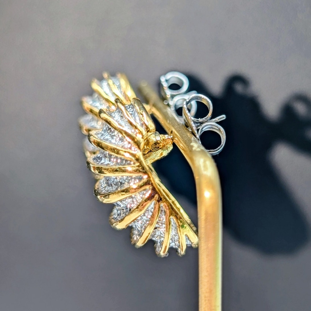 Vintage 80s Two-Tone Ribbed Domed Pierced Earrings. Pre-owned, these fabulous two tone metal earrings are in excellent vintage condition.