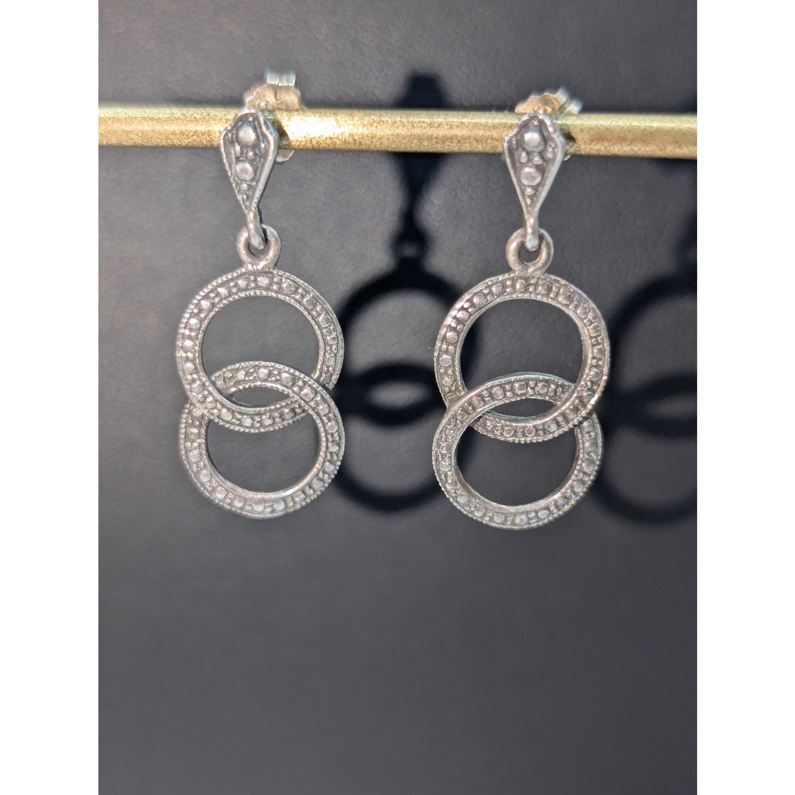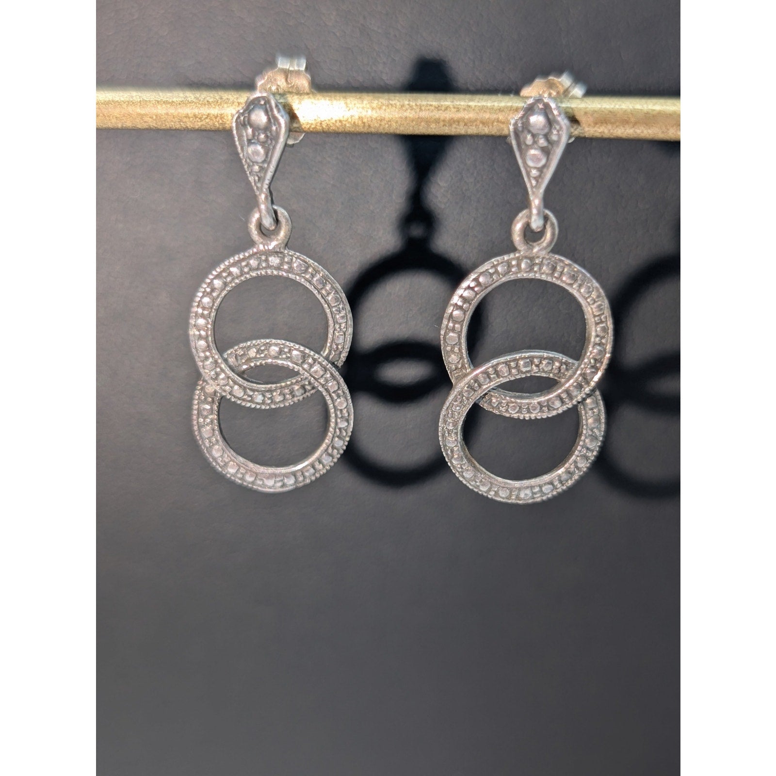 Vintage 925 Sterling Double Interlocking Rings Dangle Pierced Earrings. Pre-owned, these earrings are in good condition.