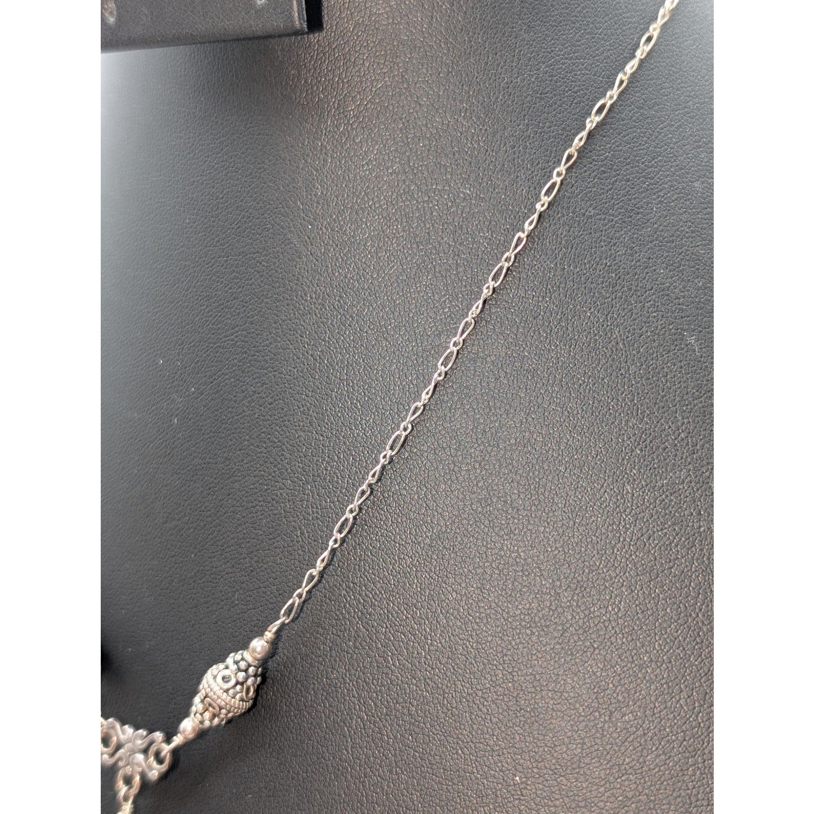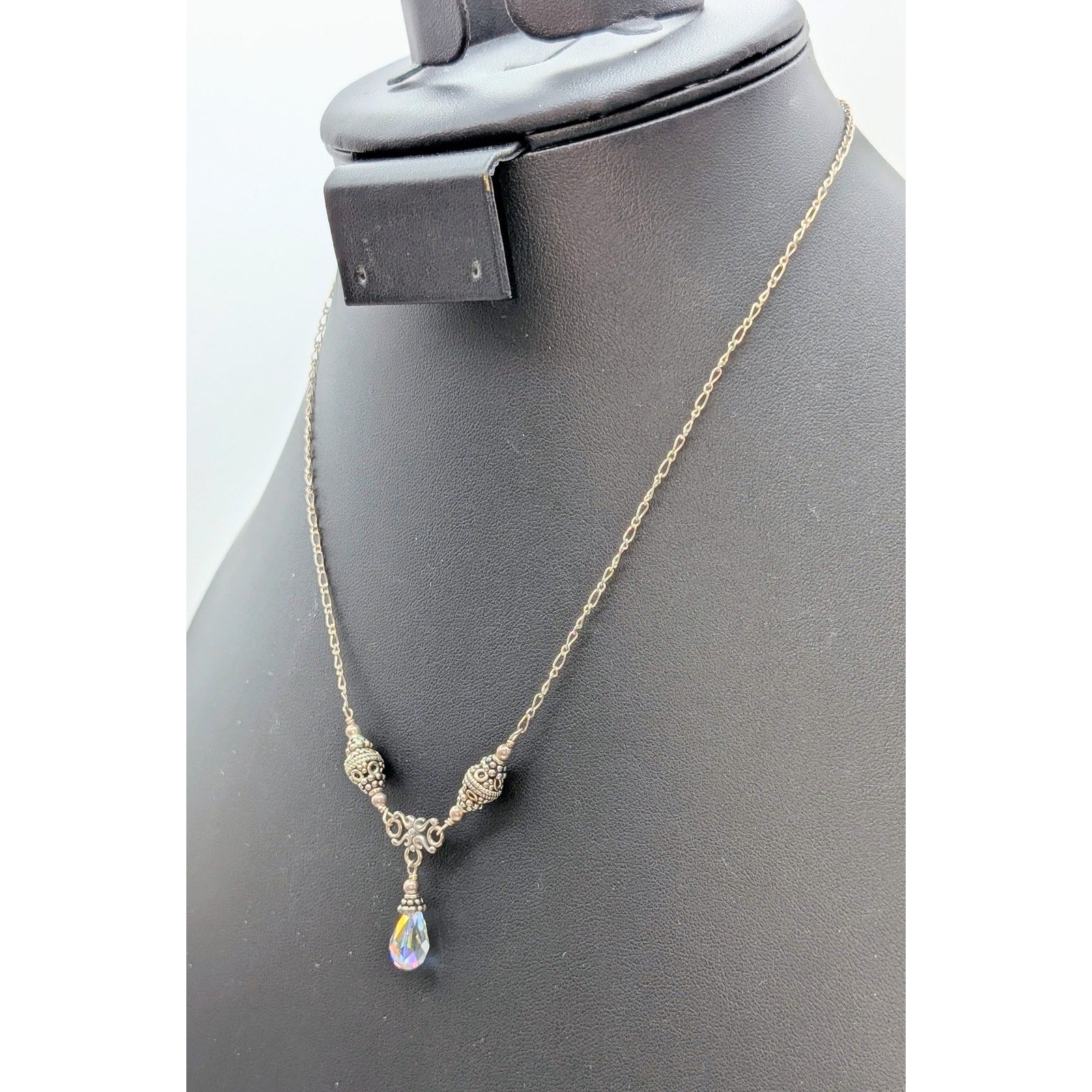 Vintage 925 Sterling Silver Beaded Chain Y Drop AB Crystal Teardrop 16"-17.5" Necklace. Pre-owned, this necklace is in excellent condition.