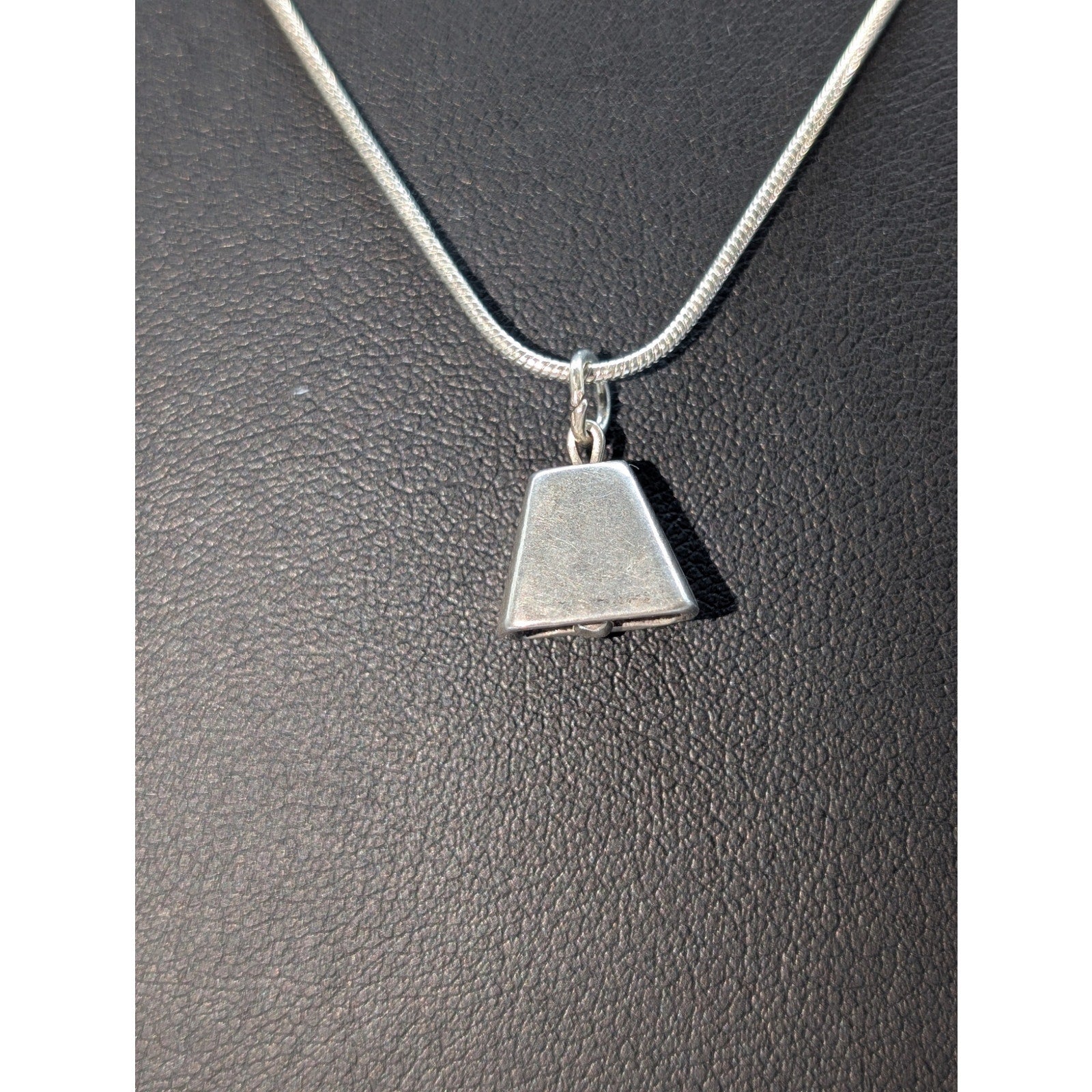 Vintage 925 Sterling Silver Cow Bell Charm Pendant Snake Chain 20.25" Necklace. Pre-owned, this sterling silver necklace is in excellent vintage condition.