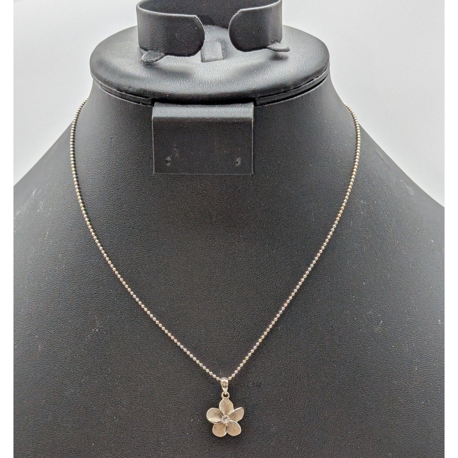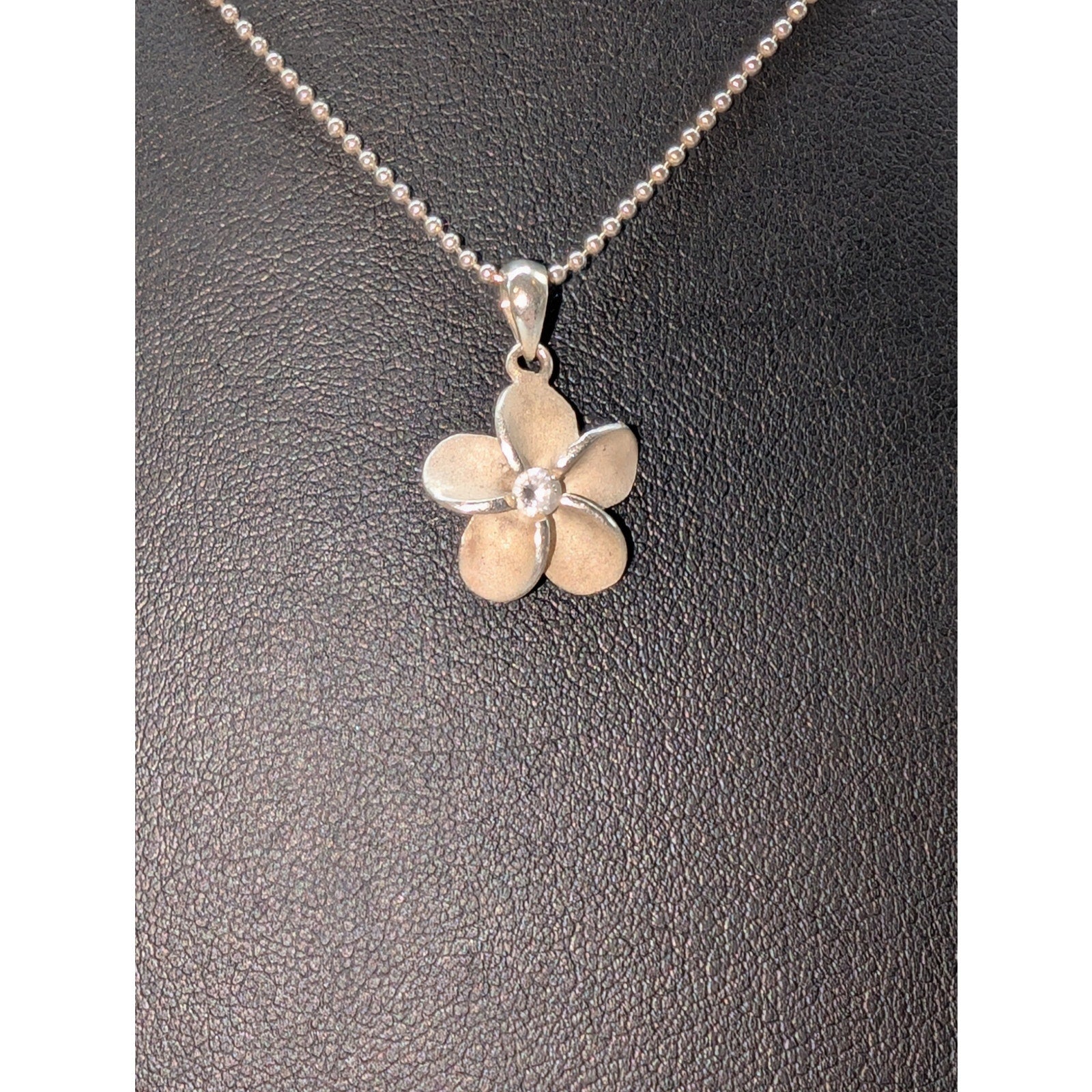 Vintage 925 Sterling Silver CZ Flower Pendant Bead Ball Chain 16" Necklace. Pre-owned, this necklace is in excellent vintage condition.