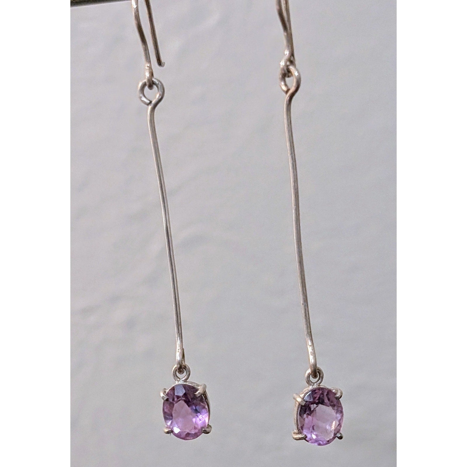 Vintage 925 Sterling Silver Long Bar Drop/Dangle Amethyst Gemstone Earrings. Pre-owned, these earrings are in excellent vintage condition. See photos for measurements.
