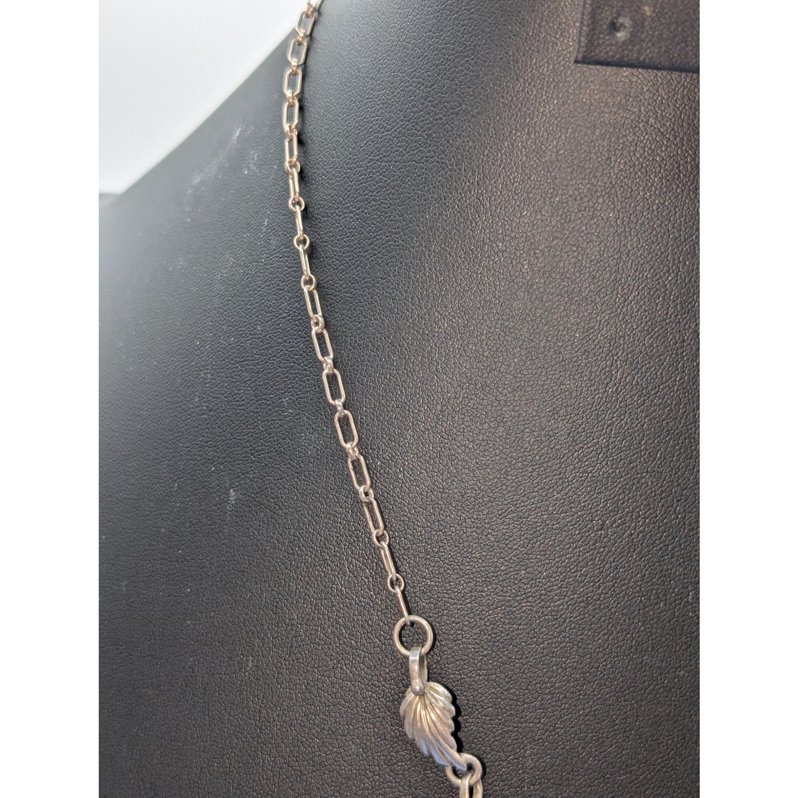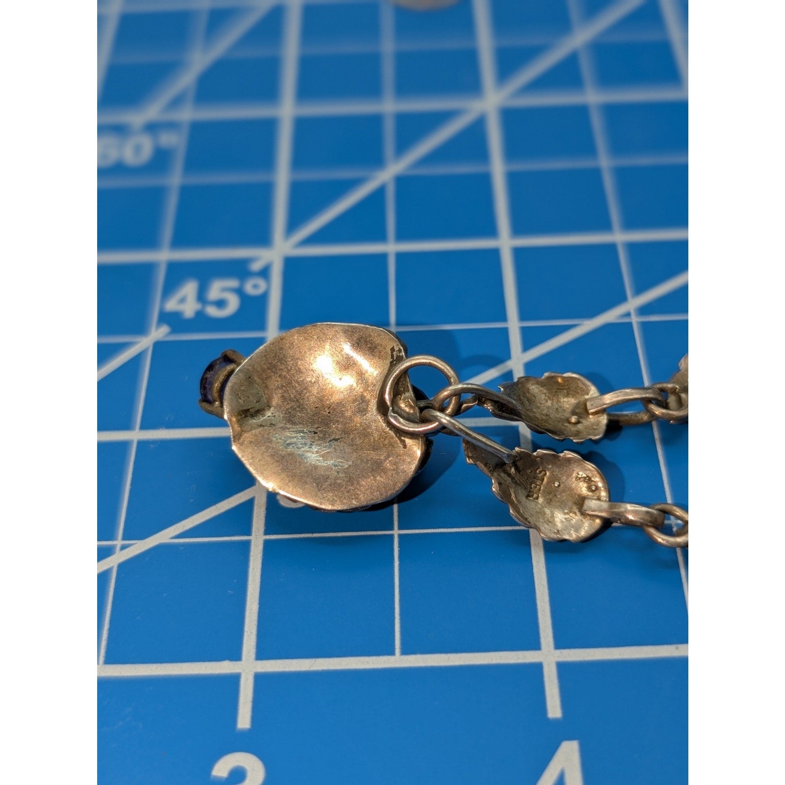 Vintage 925 Sterling Silver Purple Gemstone Leaf Flower Design 20" Necklace