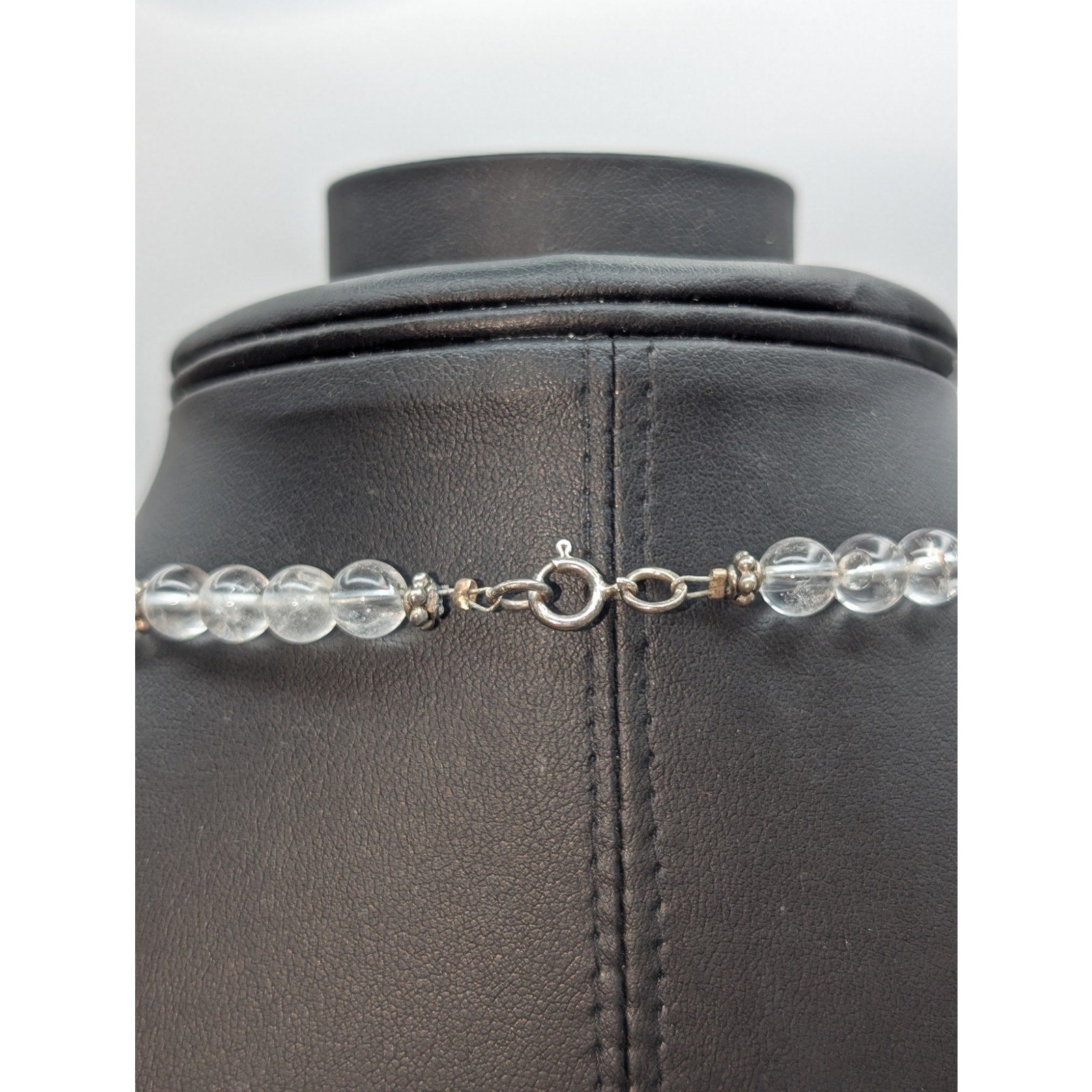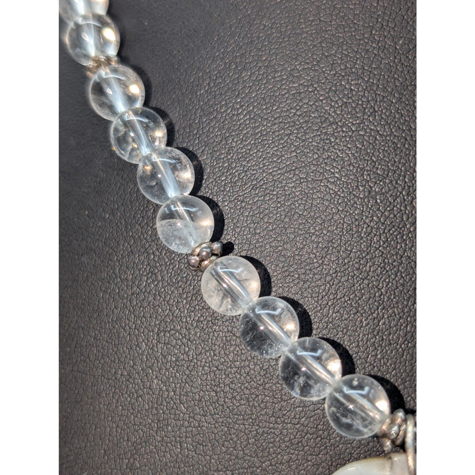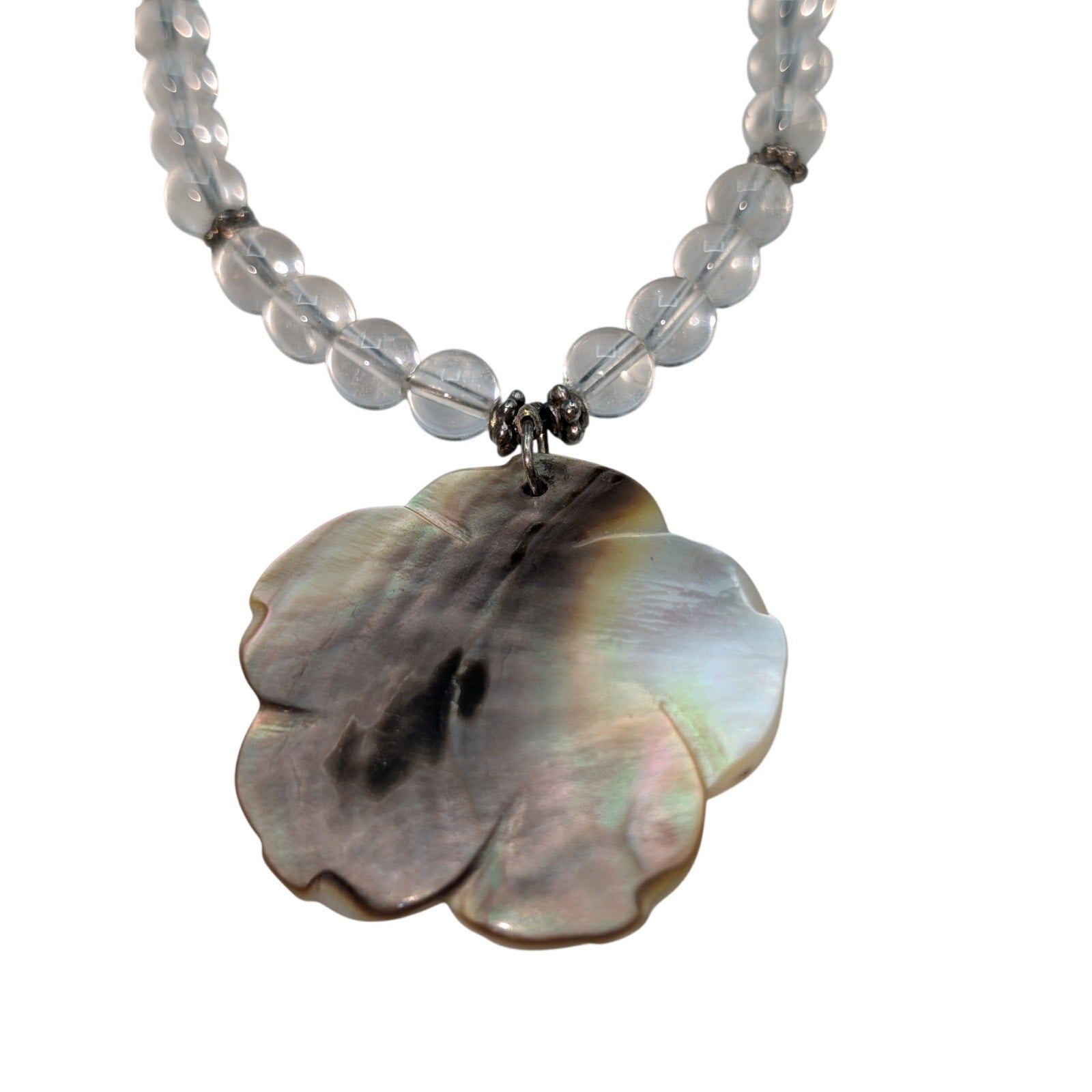 Vintage 925 Sterling Silver Quartz Bead Shell Flower Pendant 17.5" Necklace. Pre-owned, this necklace is in excellent condition.