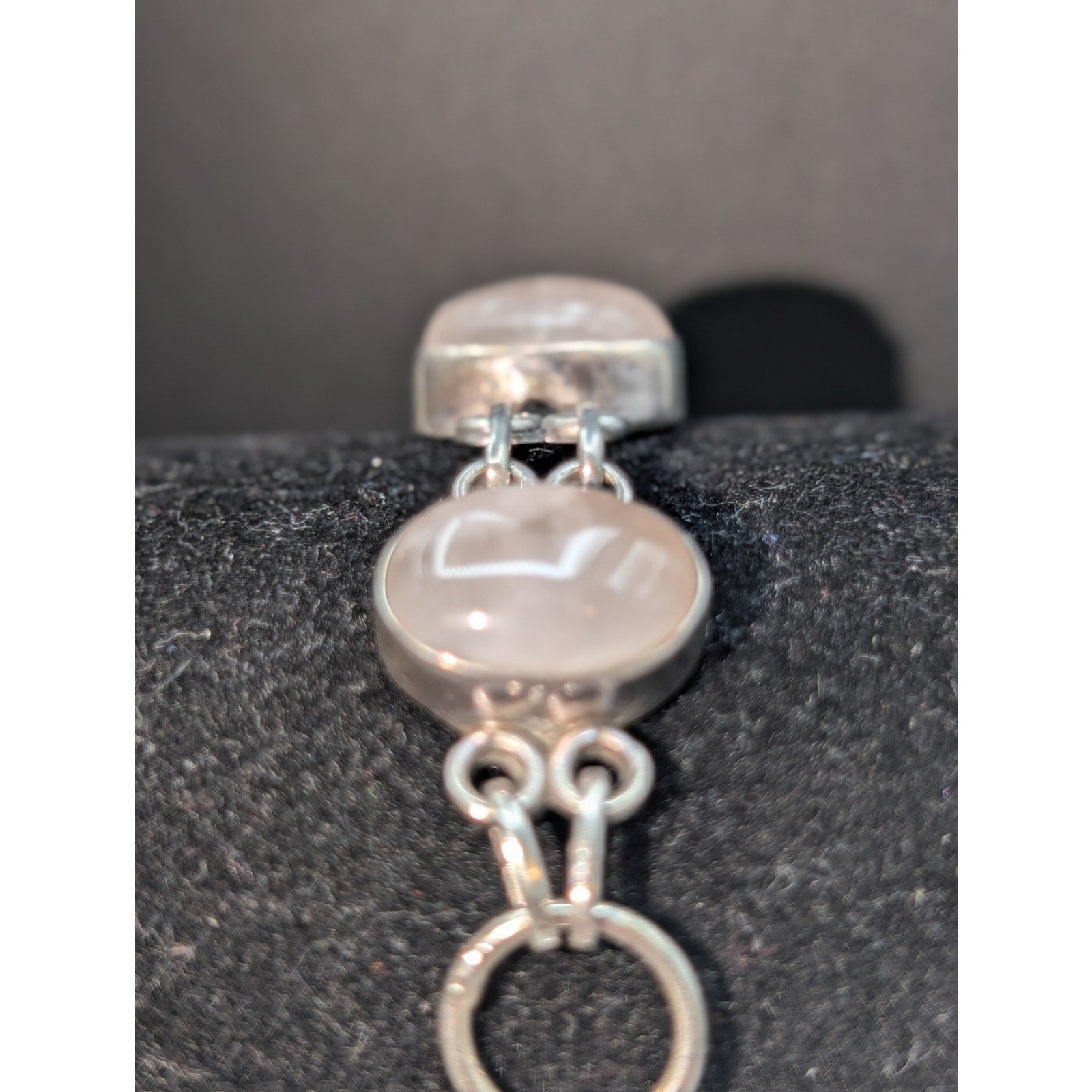 Vintage 925 Sterling Silver Rose Quartz Toggle Clasp Bracelet. Pre-owned, this bracelet is in excellent condition. I have shown the bracelet in the first and last toggle link to show the range of wrist sizes it will accommodate.