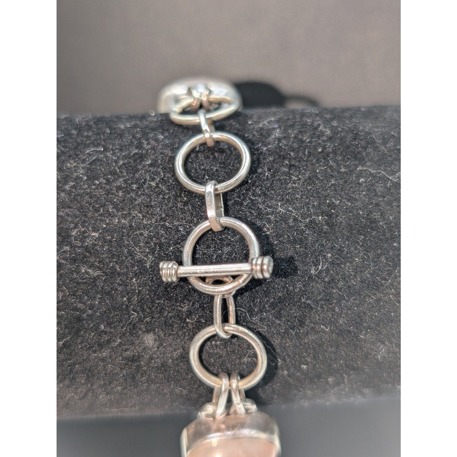 Vintage 925 Sterling Silver Rose Quartz Toggle Clasp Bracelet